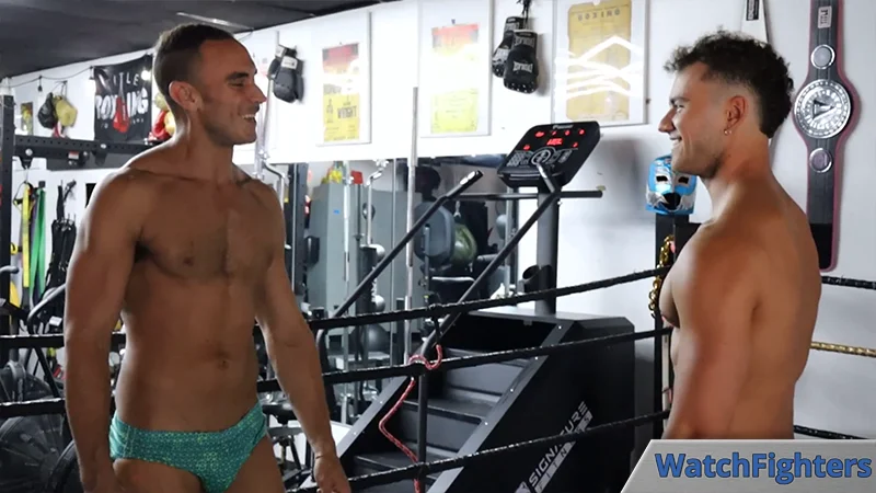 Ricky may have stripped Tarz down, but he clearly isn’t impressed with the younger man. The two size each other up, and we can take in just how fit Tarz is! There is little left to the imagination with these two.