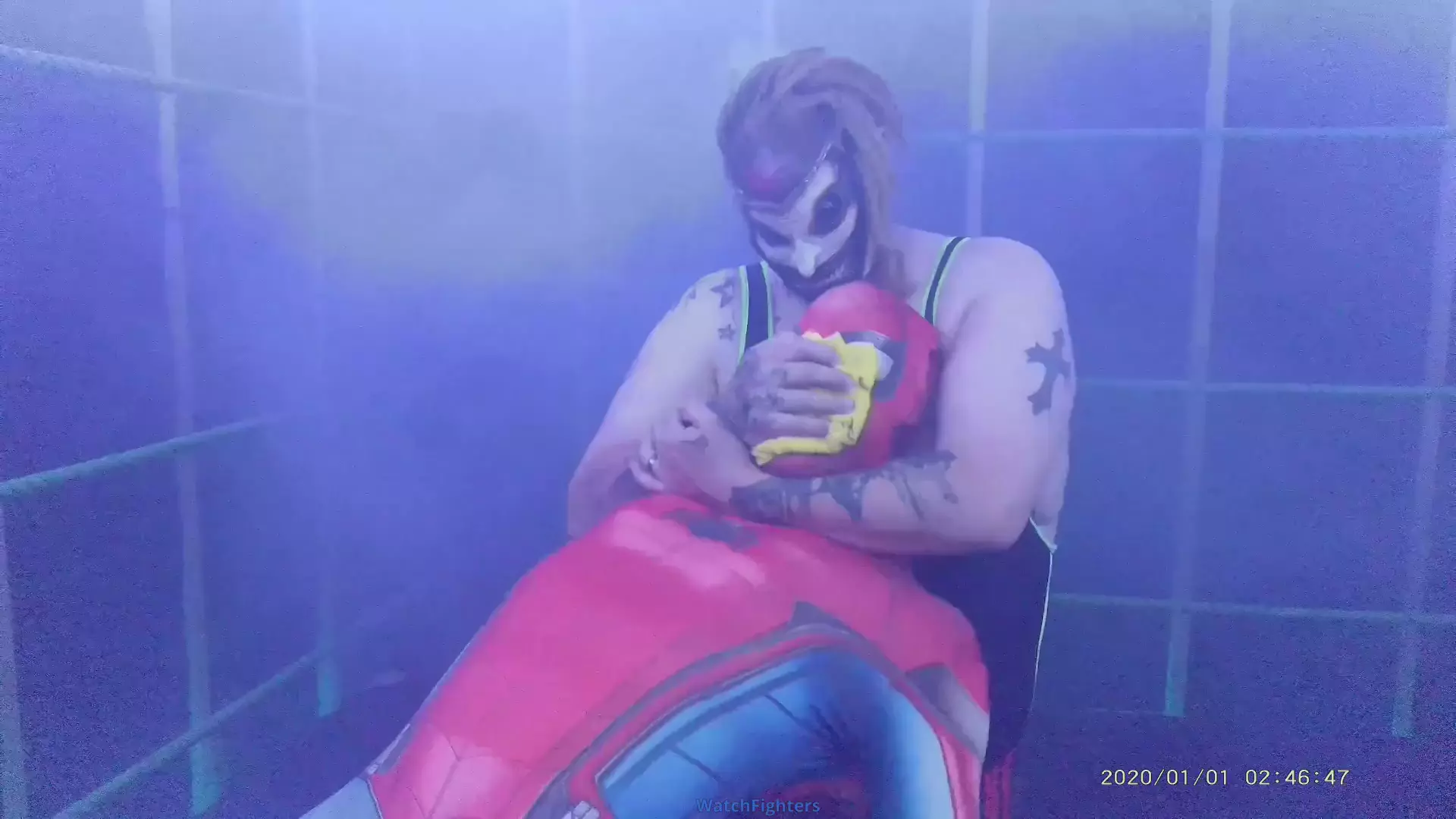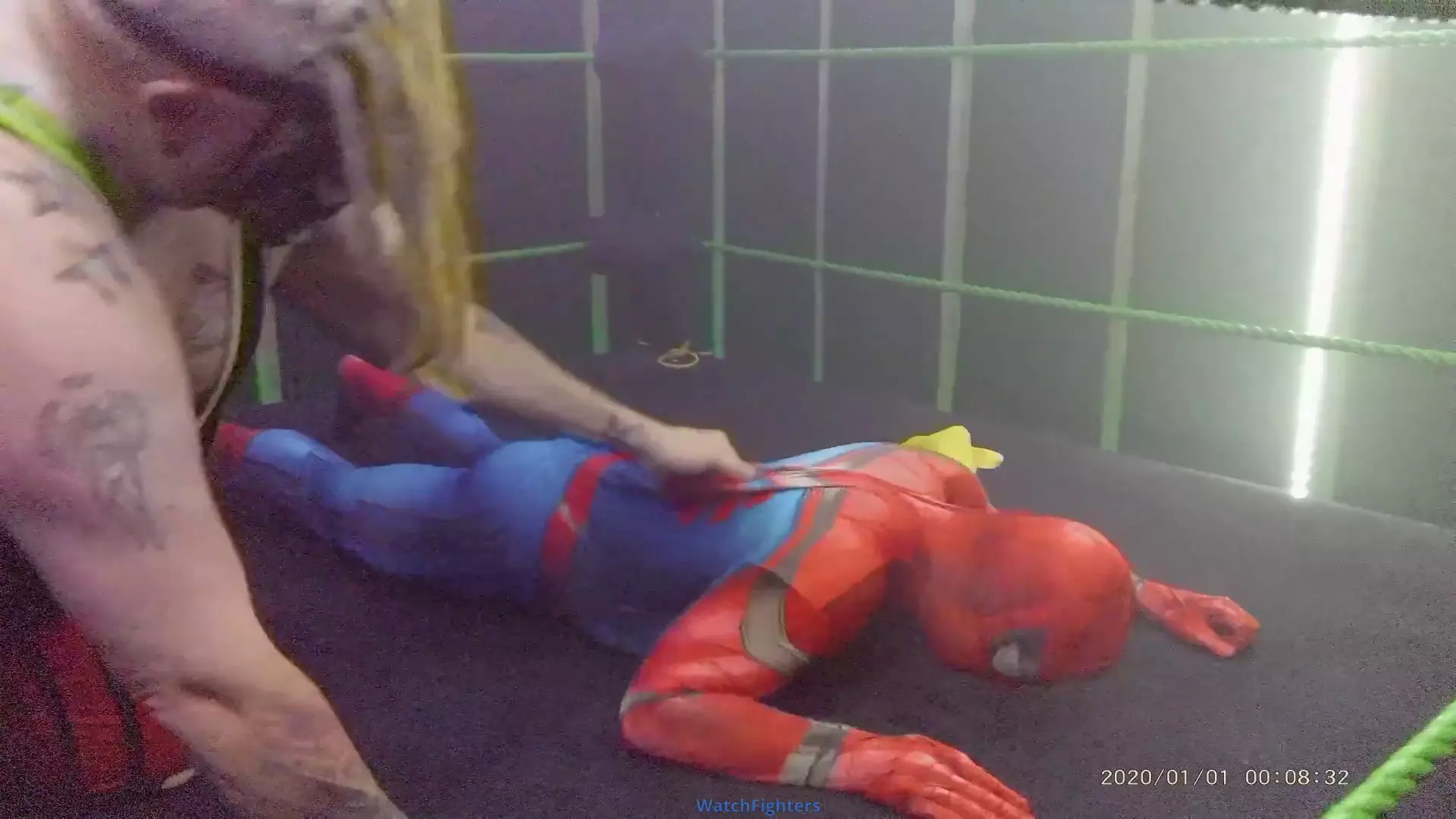 Arriving at the scene of a disturbance, our marvellous hero enters a smoke filled abandoned arena, wherein, lurking in the shadows, a fiendish figure strikes while his back is turned out of the smoke. Our heroes worst nightmare, chloroformed over and over, beaten, humiliated and left strung up from all 4's by the end, the monster orders the camera man to leave him with his prize. (Due to technical issues, the 1st minute or so has no sound, don't worry though, all the suffering is still caught just fine).
