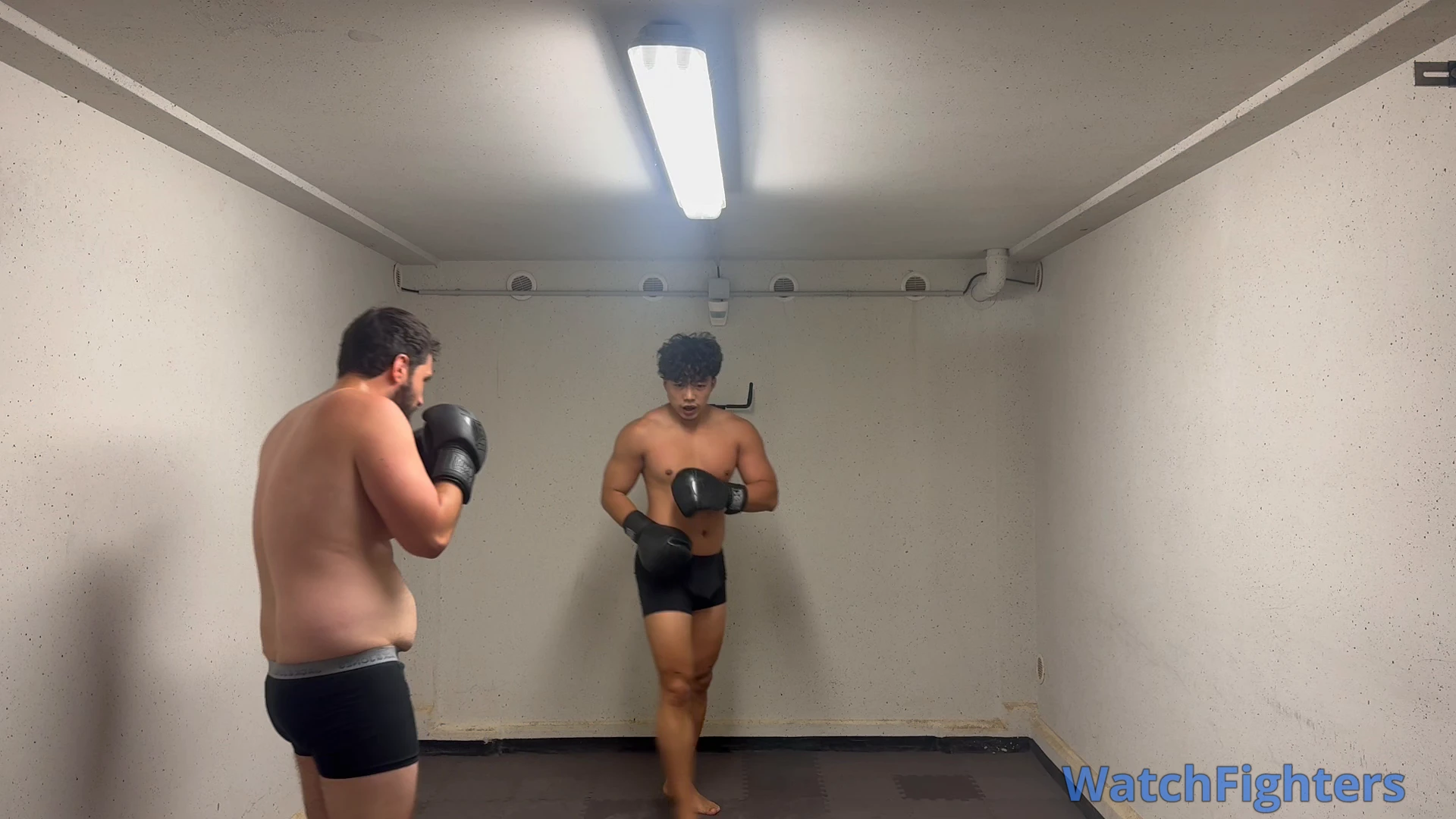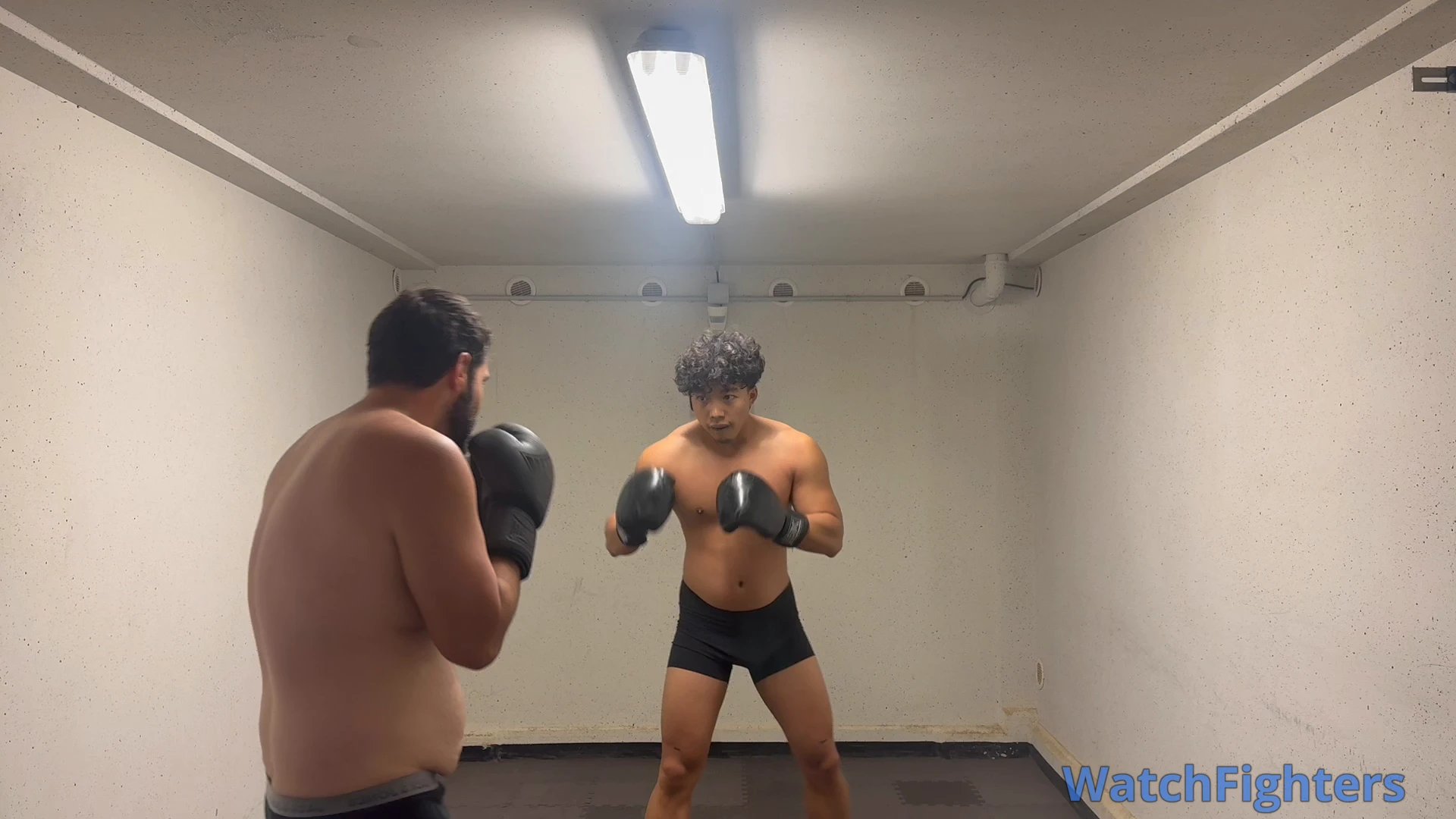This 4-round sparring session (3 mins each + 1 min rest) takes place in a gritty garage gym, where sweat, instinct, and raw skill meet.