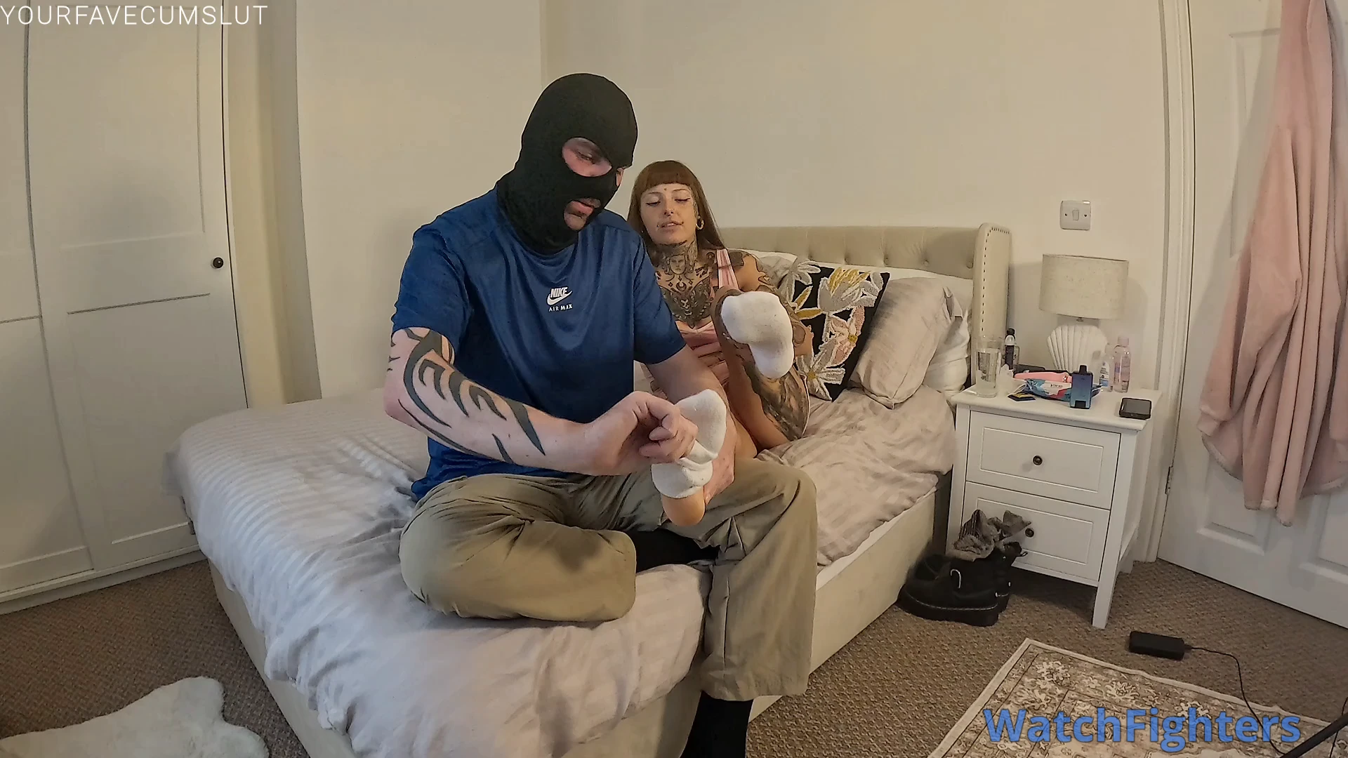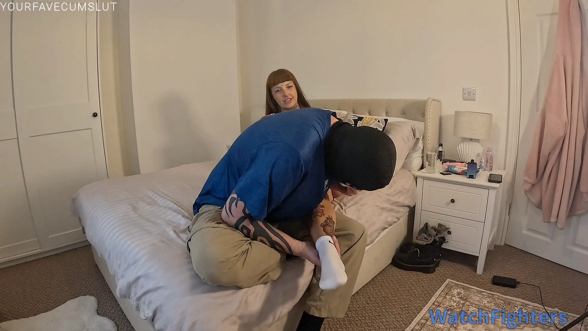 I was so sweaty after the gym that i just had to have my slave come over to lick it all up! He worshiped my feet and armpits, sniffing and licking them