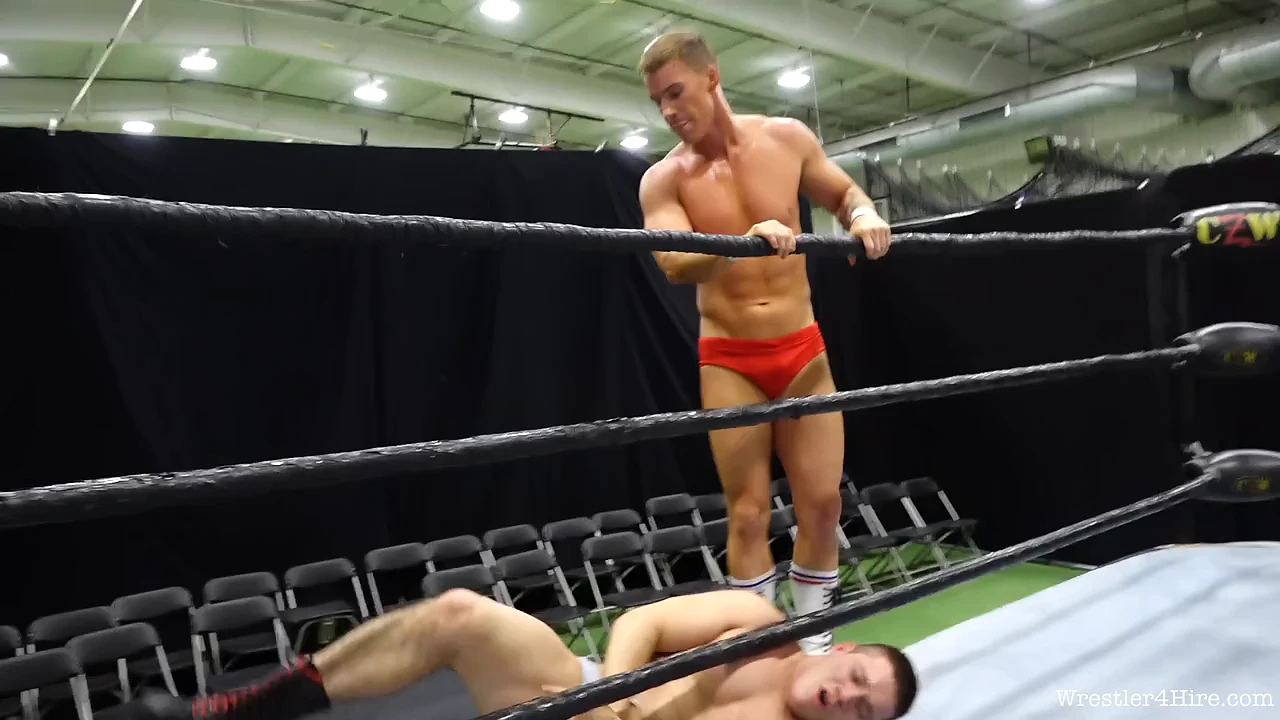 Without warning, I press him into the ropes and go to town on his eyes, making him moan like a little bitch. Then comes the dynamite. I slam his balls so hard he’s completely undone. I grab his hair, fling him into the corner, and press my boot to his ear. “That’s why they call me the king,” I say, happy to finally show the rookie what he’s up against.