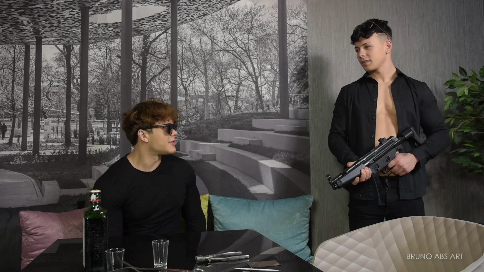 Andrew gangster revenge on Bruno police officer - gutpunch stab naked