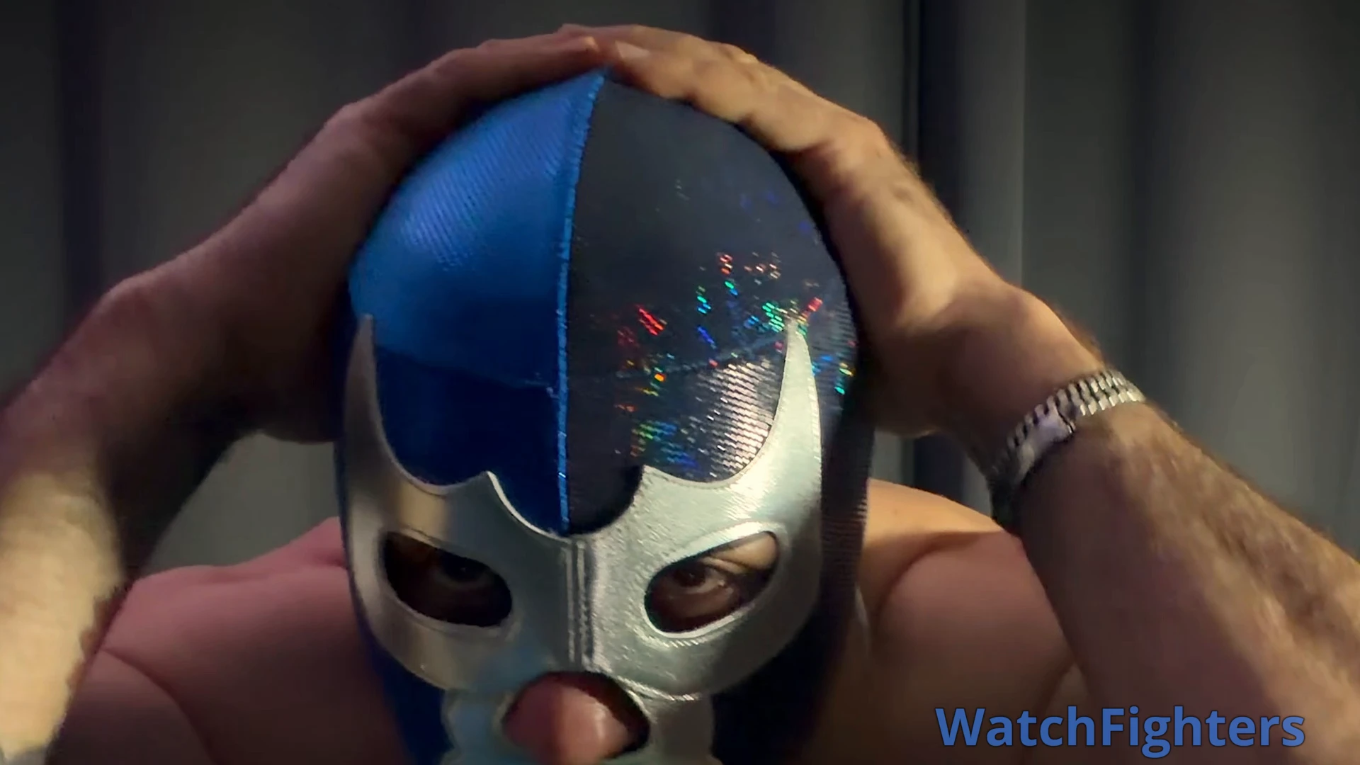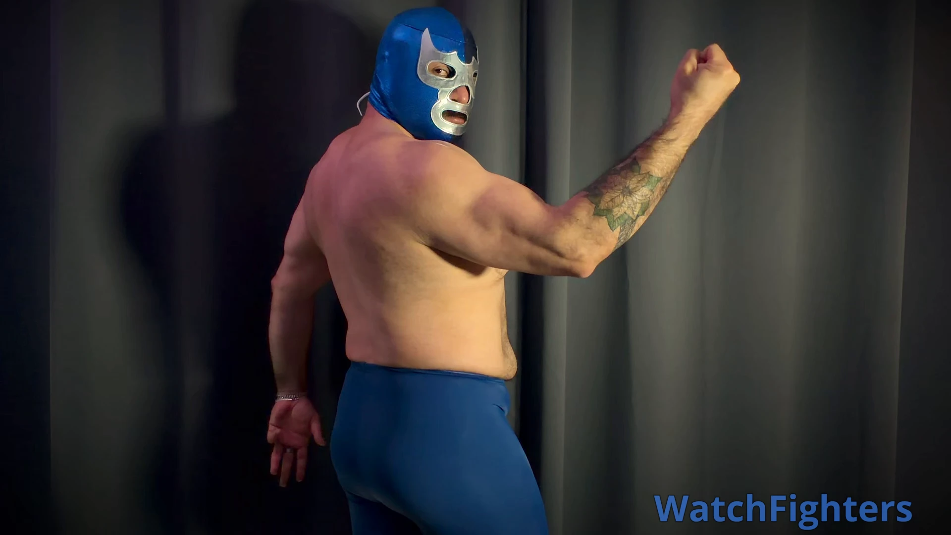 The visuals: A Tecnico in pro-grade blue spandex and mask, captured in high-contrast lighting.