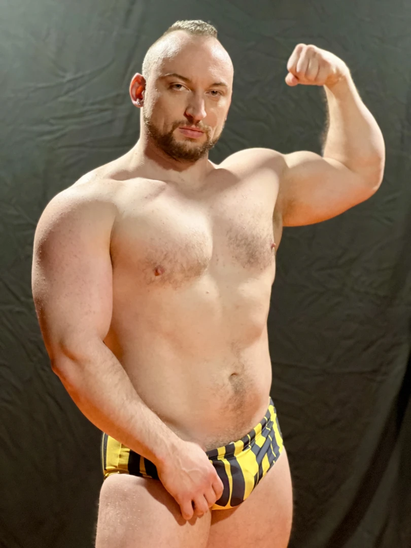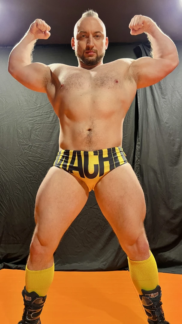 This is the ULTIMATE matchup of opposites, THICK, dom, and rough Pup Bandit goes against tall, lean, and hot jobber Evan Sterling. Bandit has so much charisma on the mats sometimes we think he could coyly charm the trunks off his opponent just by winking at him. No need for that here because on this day he was in the mood to hold Evan down in sexy and long held submission holds while shoving his tongue down his throat. He also is giving Evan a stiff dose of ball work, chops to his chest, and some HOT nose to nose holds! Those holds are always prominent on Pup’s agenda - he also is obsessed with Evan’s creamy white bubble ass and feels the need to slap it over and over (hence the red hand prints on Evan’s white cheeks). All this foreplay leads to one thing and I’ll bet the fans can guess what it is? Pup jackhammers Evan’s gorgeous round ass and we get to be the sneaky voyuers that witness all of it. From the look of ecstasy on Evan’s face, he looooves a good STIFF squash and an even hotter STIFF fucking!