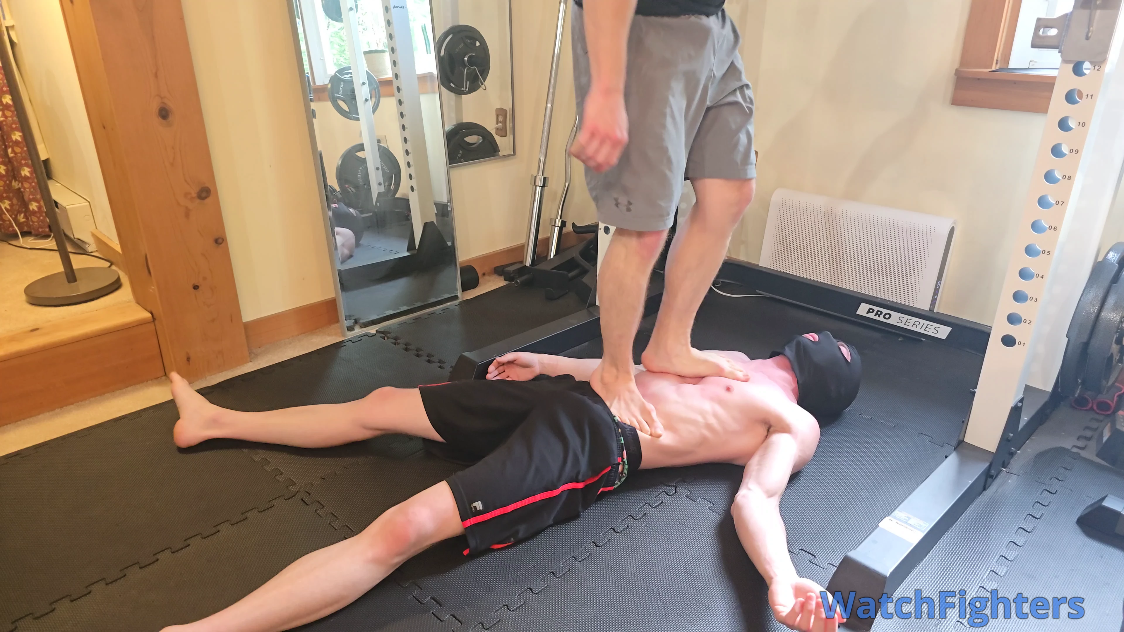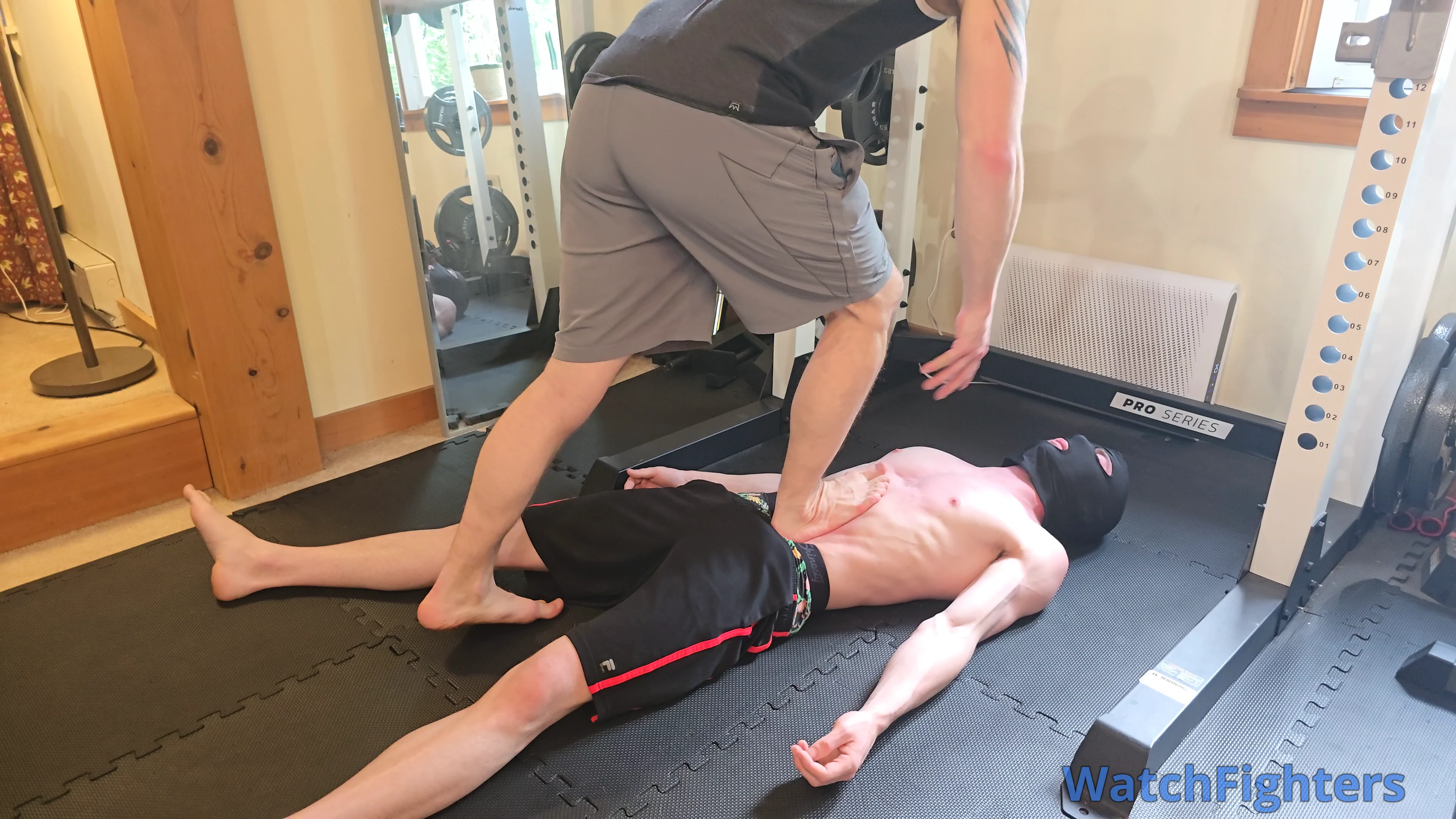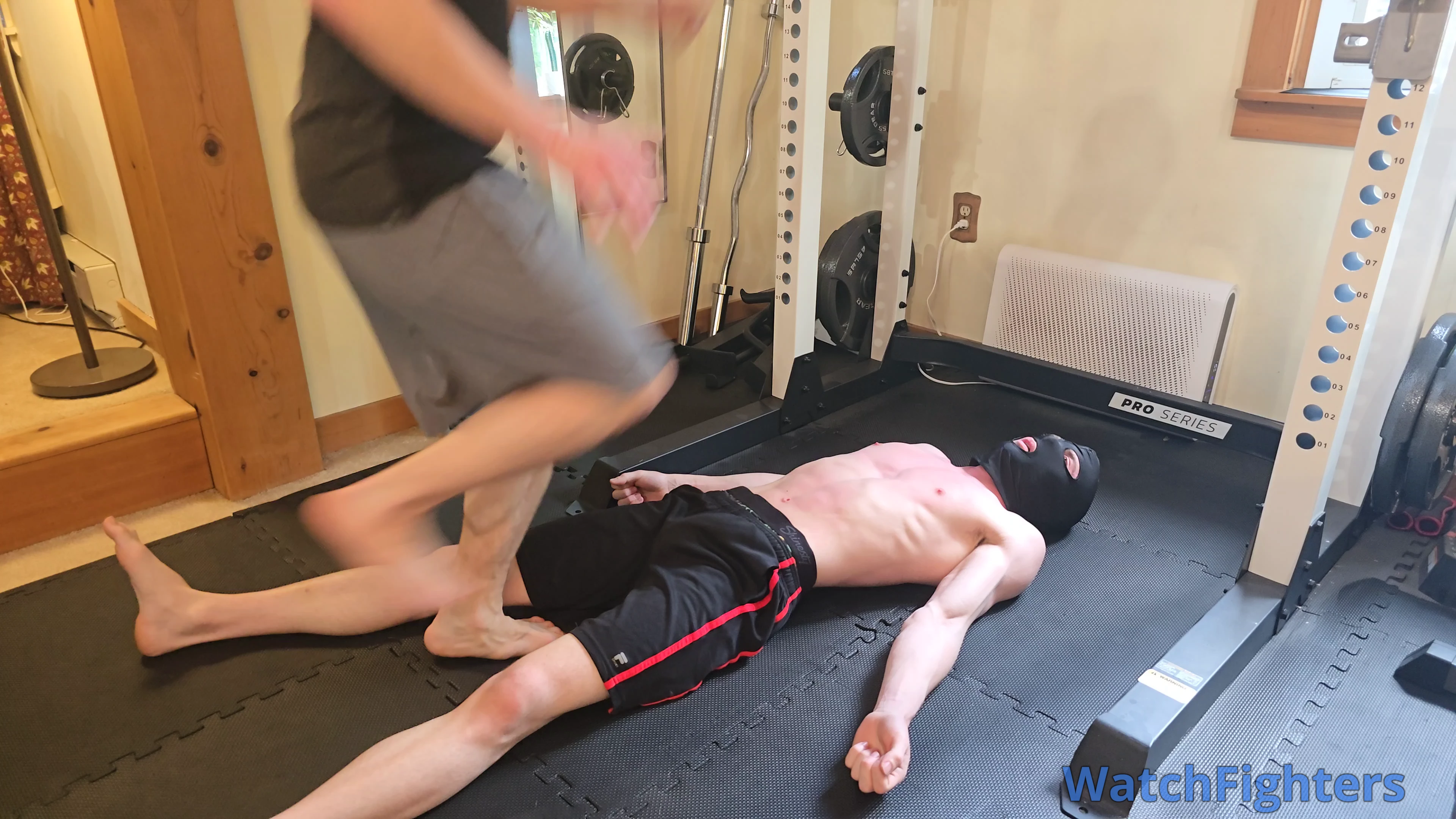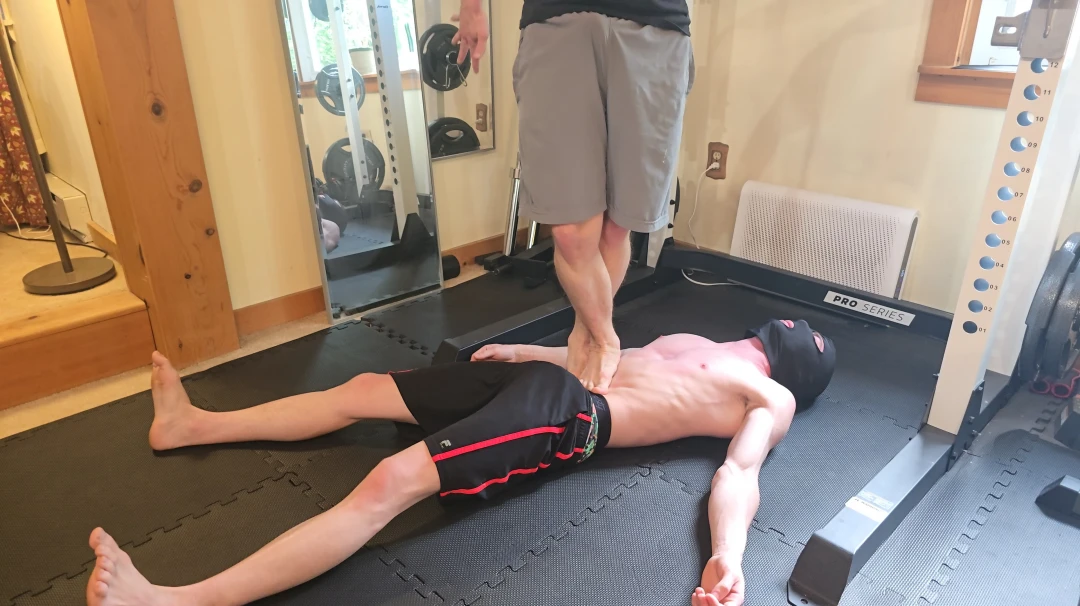 This video is 9 minutes of barefoot stomach and chest trampling. So many jumps I lost count. My trampler also hung from the power rack and dropped almost 4 to 5 feet onto my abs at least twice. I was struggling by the end so I was given a reprieve to smell my master's feet while he sat on me and played on his phone. Lots of ab pressing and cock stomping. This 9 minutes was about 2 minutes after the other video called "Bound and Punched," so I was already worn out from that. This was a tough one. Enjoy!!