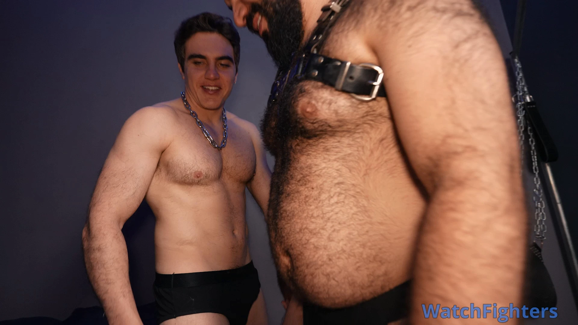 A bear dominates an athletic guy with his hairy ass! He sits on the guy's face and drives him crazy with pleasure. Between kisses and dirty talk, he returns to sit on the guy's face many times, making him smell and lick his ass!