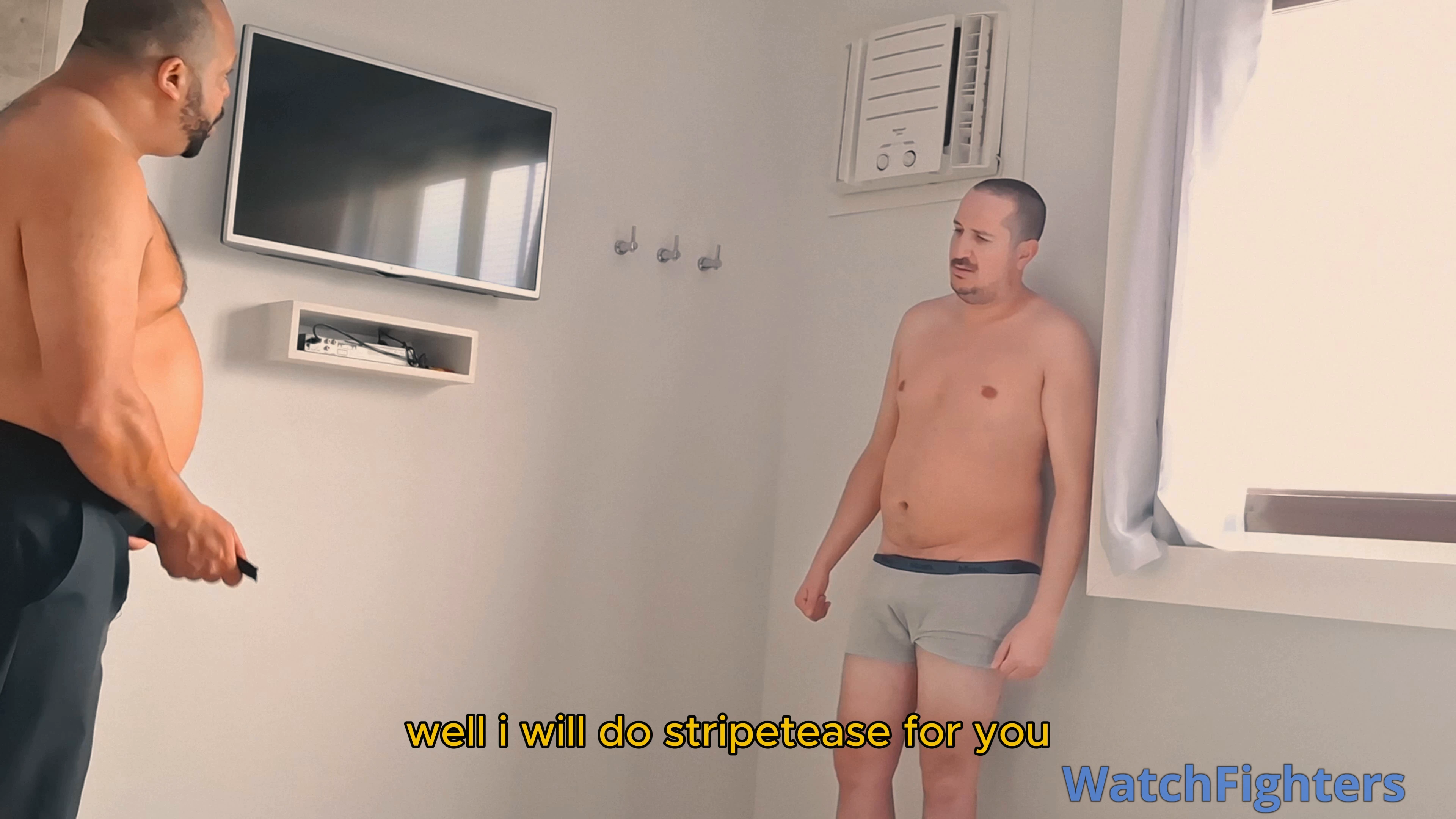 Dressed in a sharp business outfit, Bearzinho Black hunts down the jobber who has been hiding in a hotel room to avoid paying his debt. But tonight, there’s no escape. Bearzinho breaks in with authority, armed with his baton and his powerful body, ready to collect what’s owed — one way or another.