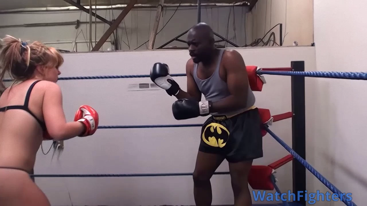 Bikini Thug Cori feels Darrius stood her up for a date, and now wants to take it out on his ass. This is Cori's first mixed boxing match, does she have what it takes to take on Big D? The two battle hard back and forth but as the match wears on, both are starting to show signs of battle damage! Cori seems to be getting the worst of it, ends up topless and by the final rounds, she is getting dominated until she is knocked the hell out and defeated.