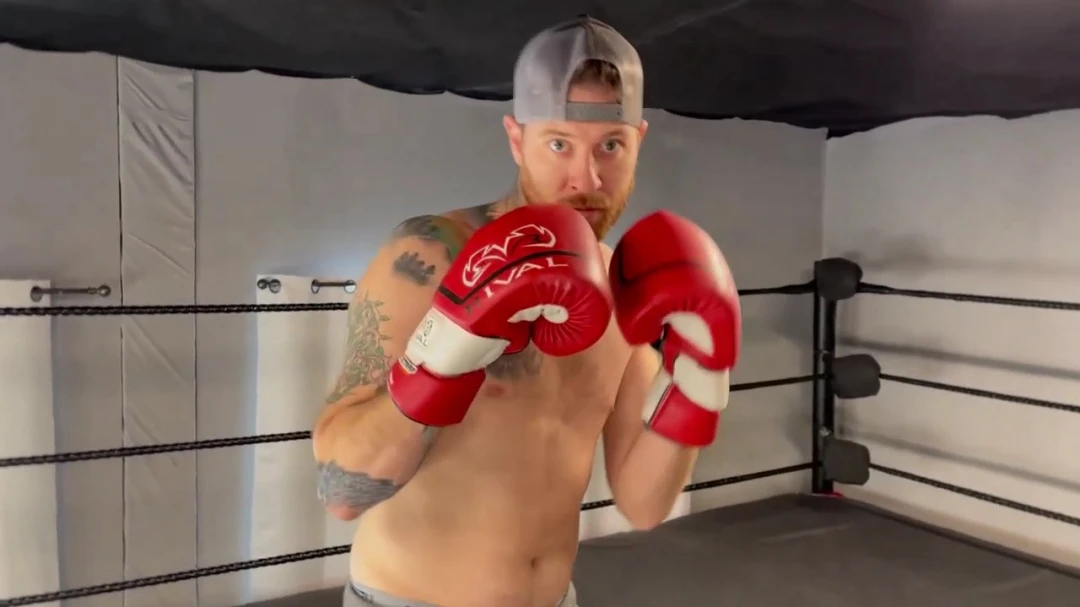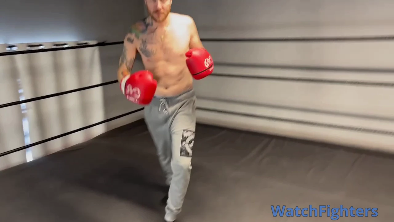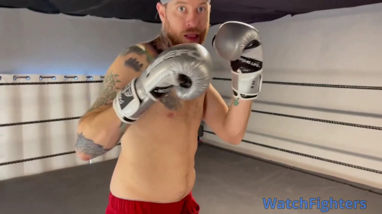 Second Segment - Another POV boxing session with the tall tattooed Canadian man Aaron Hummer, but this time in red sweatpants and silver boxing gloves. See what it's like to be dominated by his gloves.