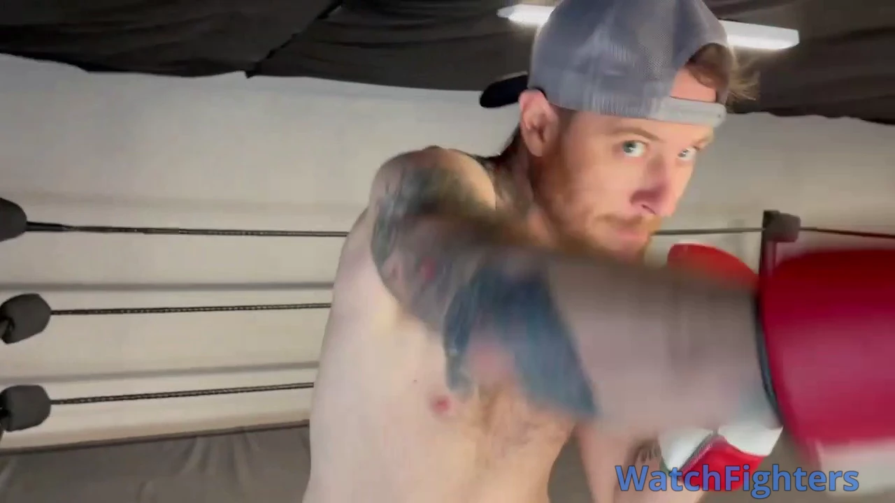 First segment - This is a POV of Aaron Hummer boxing. He is so sexy in his grey sweatpants and cap. His red gloves are really standing out. Aaron is extremely dominant and he is one of the best male in this Canadian league. Like all the other men in this fight club, he is coming to the ring to forget about work and the family! He needs his time with other guys. If nobody is there to face him, he will gladly take the gym owner even if she's a woman, BUT he prefers facing real men in the ring. This is a POV with victory poses. He is the big winner of this fight.