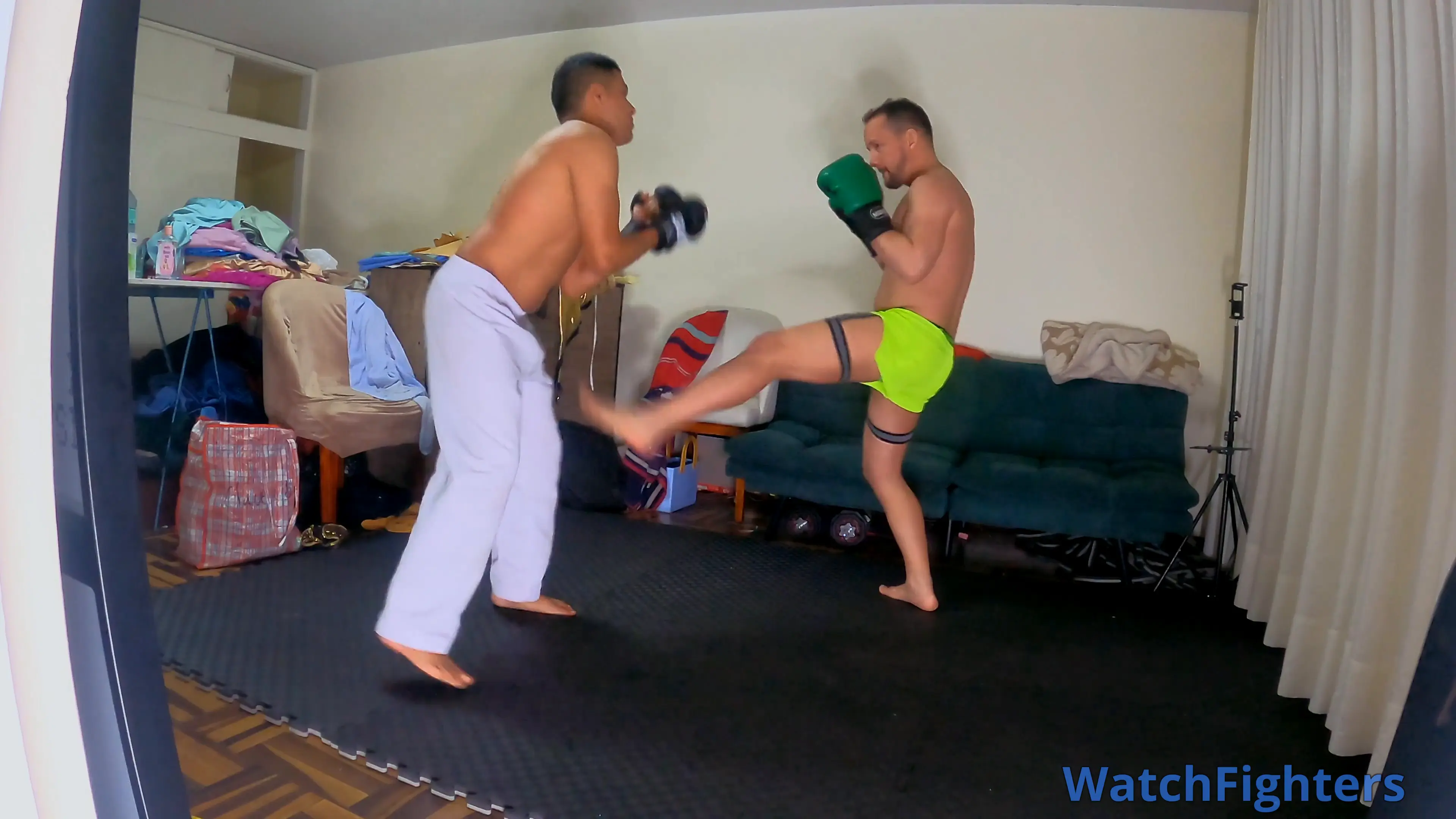 Nick, with his boxing experience, faces off against Carlos, a former jobber now stepping into the ring as a determined karateka. What starts as a technical duel between styles quickly escalates into a more intense, no-holds-barred fight. The exchanges of punches grow fiercer until Nick reveals his kickboxing and Muay Thai training. His legs transform into shields that strike with force even when he’s just defending. In this underground match where there’s no room for weakness, can Carlos withstand the pressure, or will Nick’s experience prove too much?
