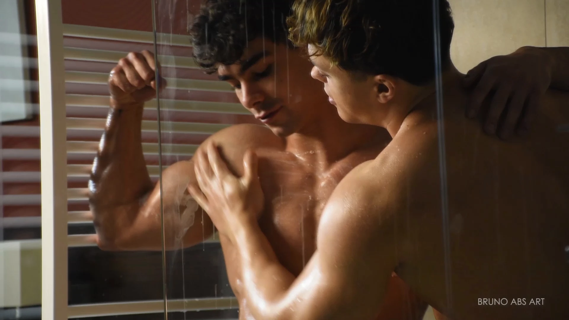 Bruno and Andrew takes a friendly hot shower - naked muscle worship