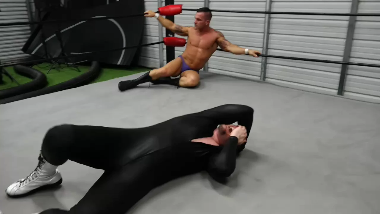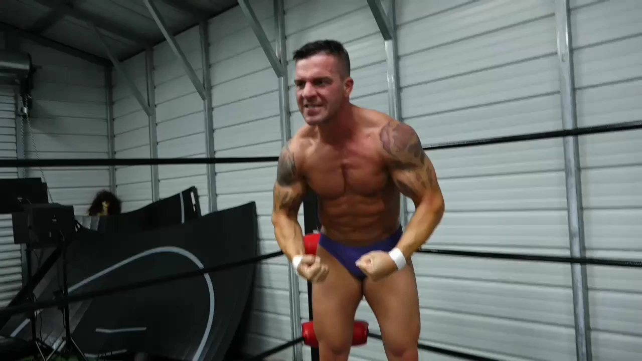 Braden is one sexy man! He’s in the ring, Championship Belt on his shoulder, bragging about his 13 years of wrestling experience. He admits that Nick Justice has been running through his opponents at W4H, but says he isn’t ready for this match. This is some of the most serious trash-talking we’ve seen. Nick talks about having 12 years of wrestling experience and that he became depressed and opened his dungeon when Braden previously beat him. He further talks about how he’s losing weight and will get shredded again. He talks about eating the souls of his victims. Braden appears to have a slight look of fear in his eyes. As Braden puts down the belt, Nick attacks from behind and the match is on.