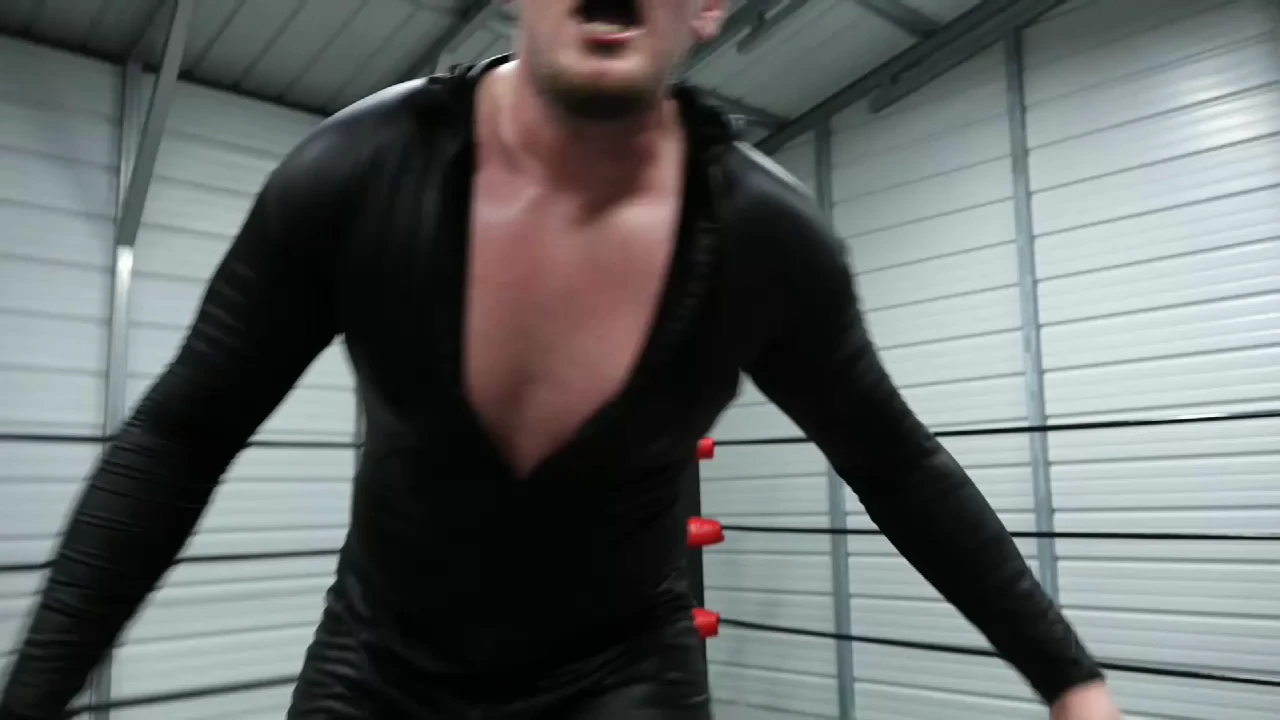 Nick is relentless in his attack on Braden, but Braden didn’t get that belt by being a jobber. Nick shows a level of viciousness we rarely see. He pays special attention to Braden’s package with punches, kicks, and even a headbutt. Nick even bites one of Braden’s nipples. He has Braden down on the mat, threatens to take his soul and then take his girl. Nick takes the belt and attempts to smash it into Braden’s head, but the Champ ducks and Nick goes flying over the top rope. Braden goes out of the ring after him and dishes out some punishment of his own. Nick does something we have never seen.
