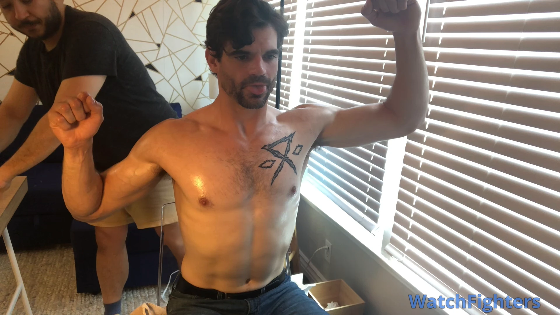 Buy the video streamEric/Ericbot is made nice and shiny with an oil massage, frozen with a silly expression, wobbled back and forth, made to be blank and obedient, pants like a dog while making his pecs dance, gets exposed below the waist while frozen, and strikes a frozen pose in the bathroom hallway.