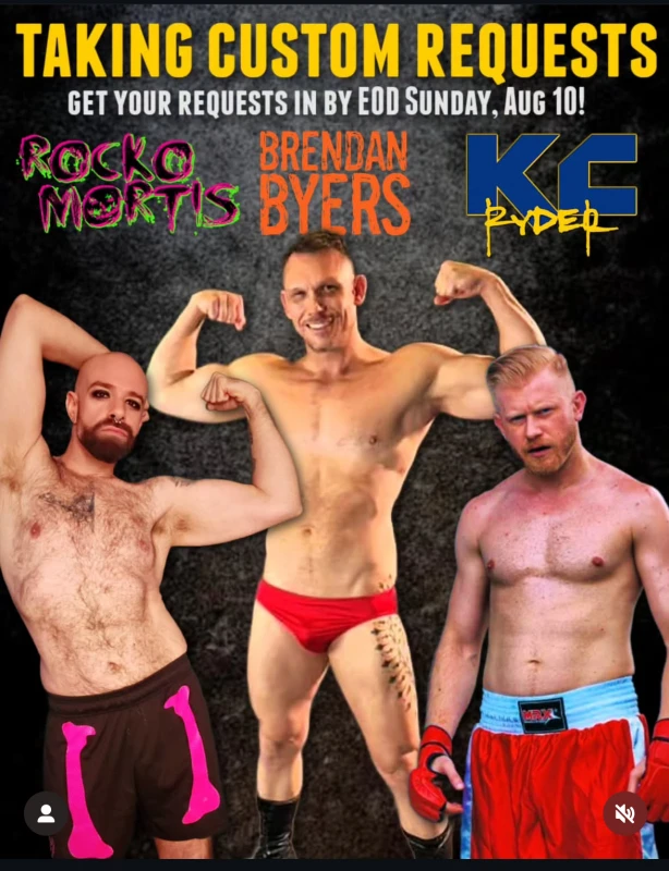 Custom RequestsPosted on 2025-08-07#customThis content is made available for free by Brendan Byers.More like this Pro wrestling See All Pro wrestling > 392 0 Report Meeting up with Rocko Mortis and KC Ryder. Get your custom requests in by EOD Sunday, August 10th Comments0You need to log in to post a comment.