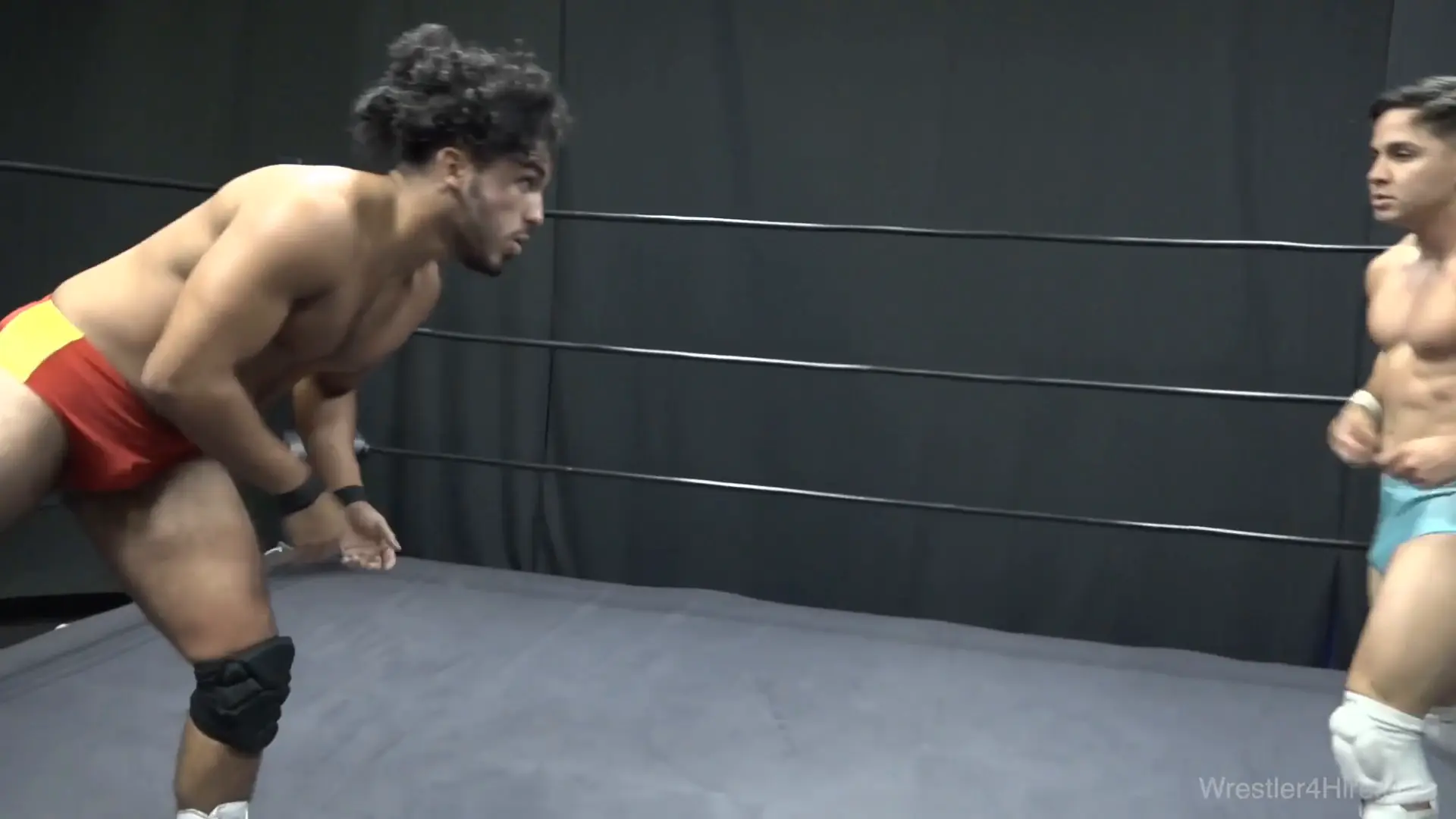 Bam Bam Bossio is nothing if not confident. As he surveys the ring, he sees across from himself the figure of Javier the Hunk, who informs Bam Bam that he is a national champion. Not surprisingly, Bam Bam is not overly impressed. As the two shake hands and begin their contest, it becomes immediately apparent that Bam Bam intends to use his size advantage in this bout. When he mockingly says, "National champion, huh?", Javier informs him, "In my weight class, yeah." When a test of strength is offered, Bam Bam uses his ability to tower over Javier to get the ring veteran down to the mat.