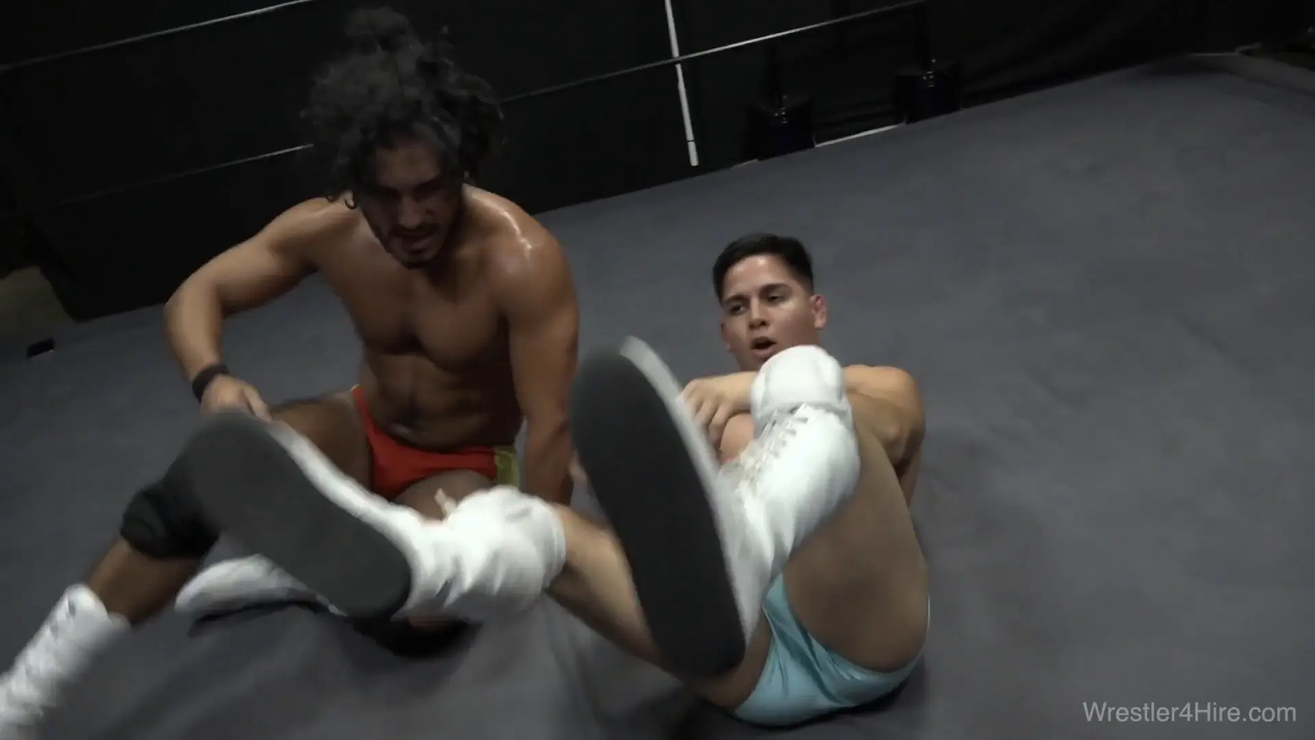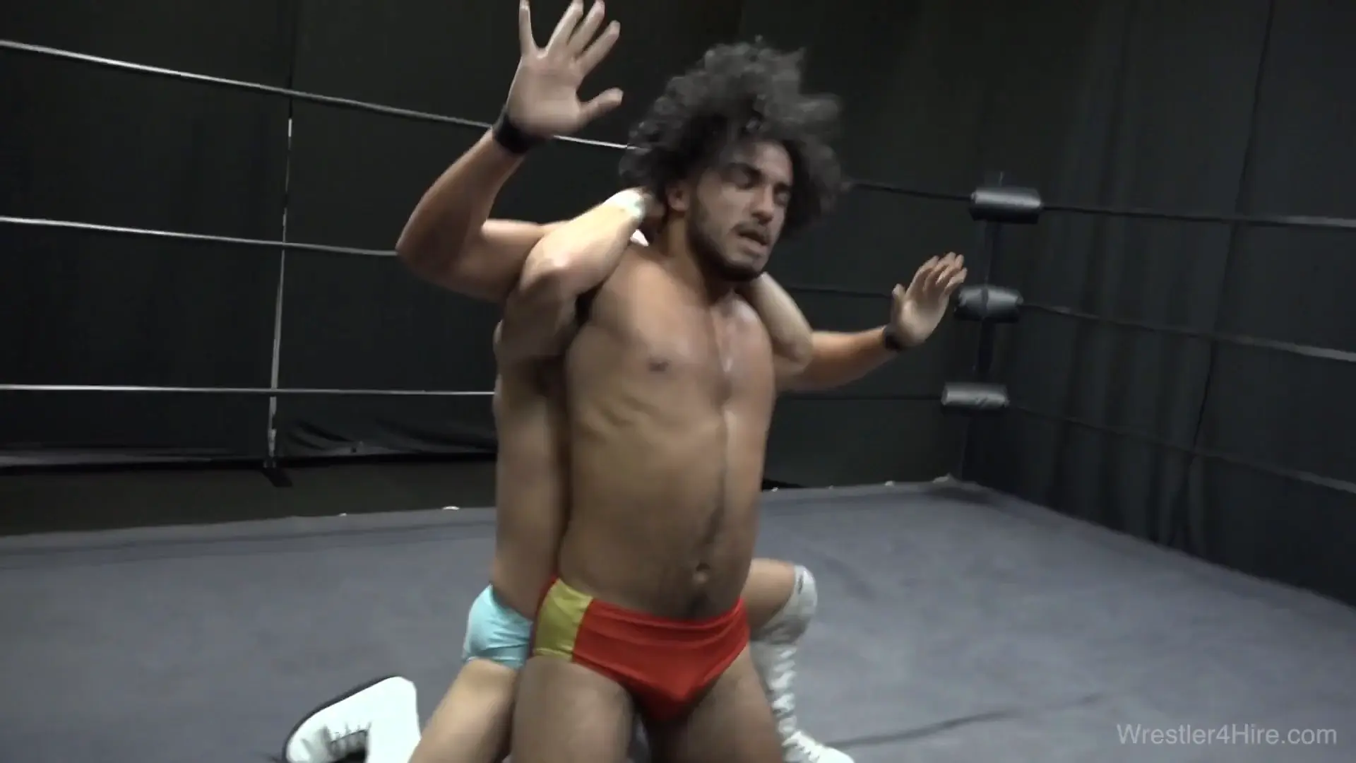 However, Javier understands the fact that once you get a bigger opponent on the mat, the size advantage is effectively nullified. As the duo trades holds back and forth with arm bars and leg scissors, it is not until a bodyslam by Bam Bam that the tide appears to have turned into Bossio's favor. A second bodyslam and Bossio is feeling his oats as Javier agonizes in pain. Unable to help himself though, Bam Bam goes into taunt mode and when he tries to deliver a third bodyslam, Javier reverses it and delivers his pwn bodyslam to Bam Bam.