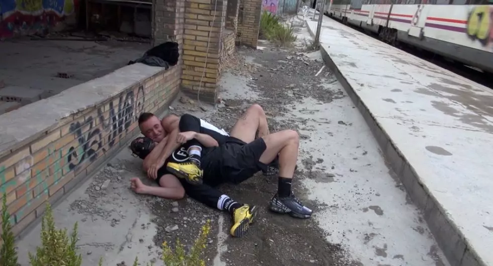 involving sneakers and tracksuits, but then he goes too far and we go to the ground, starting to fight while a train speeds through that abandoned train station. We will continue later in his private dungeon.