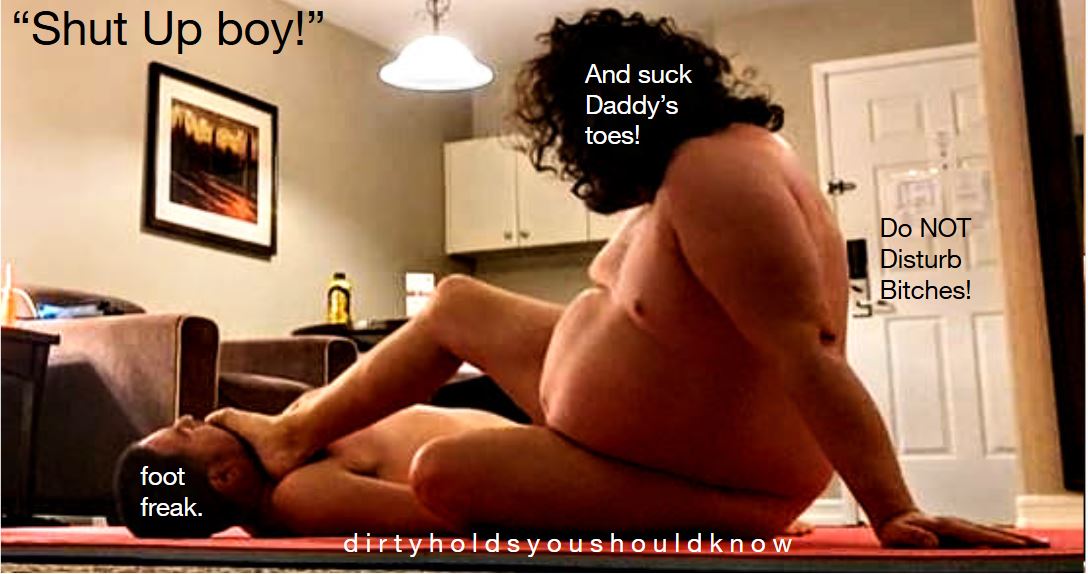 There are definitely foot doms and foot freaks in our community. Here you see one of each. The eager foot sub trapped and happy under the foot of his Daddy.