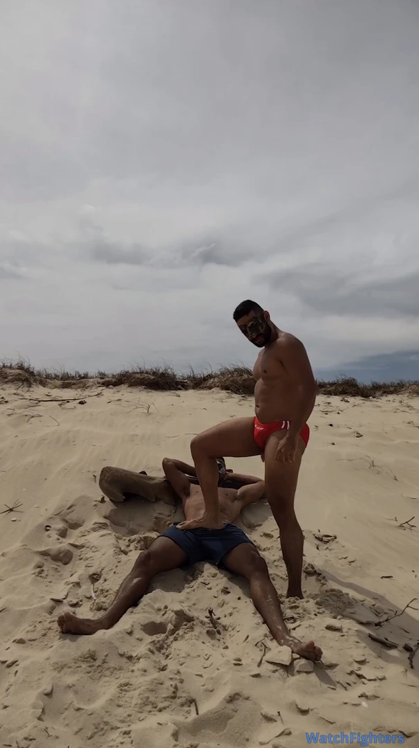 Esmagando os ossos do escravo e exibindo as pernas na praia