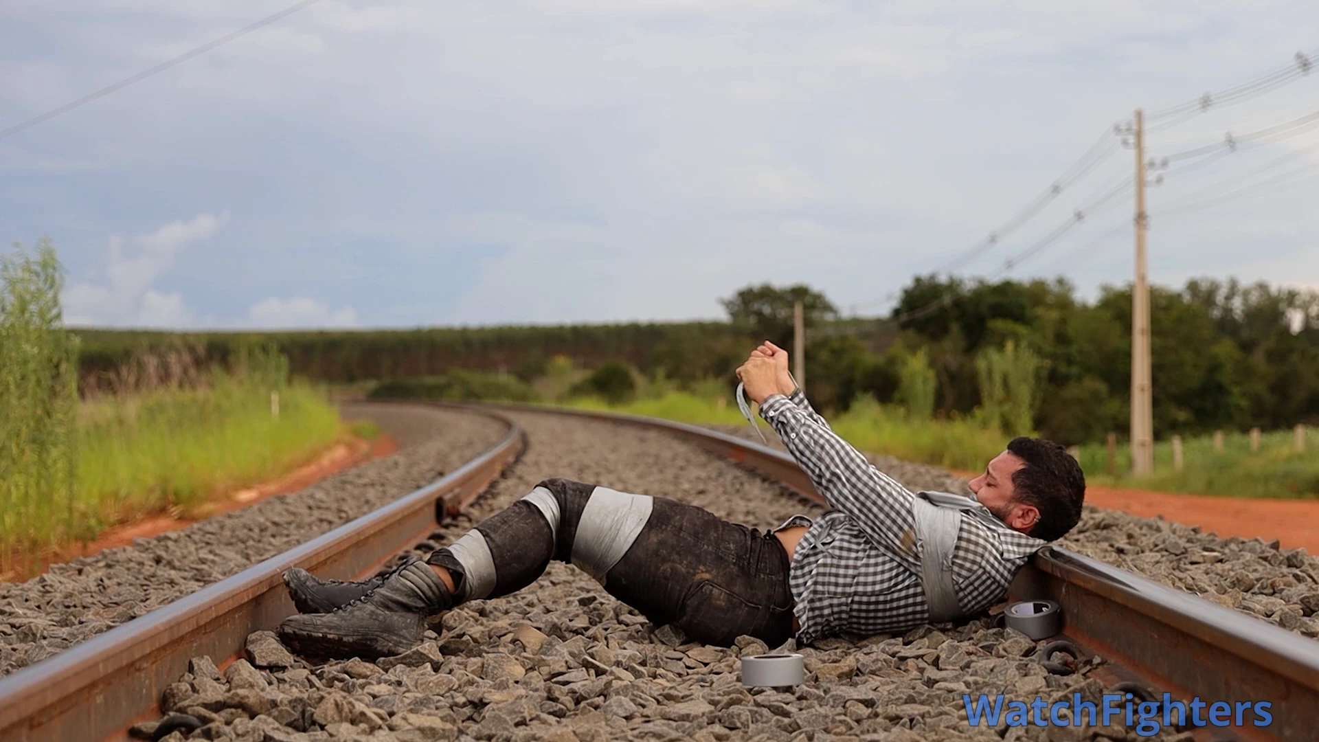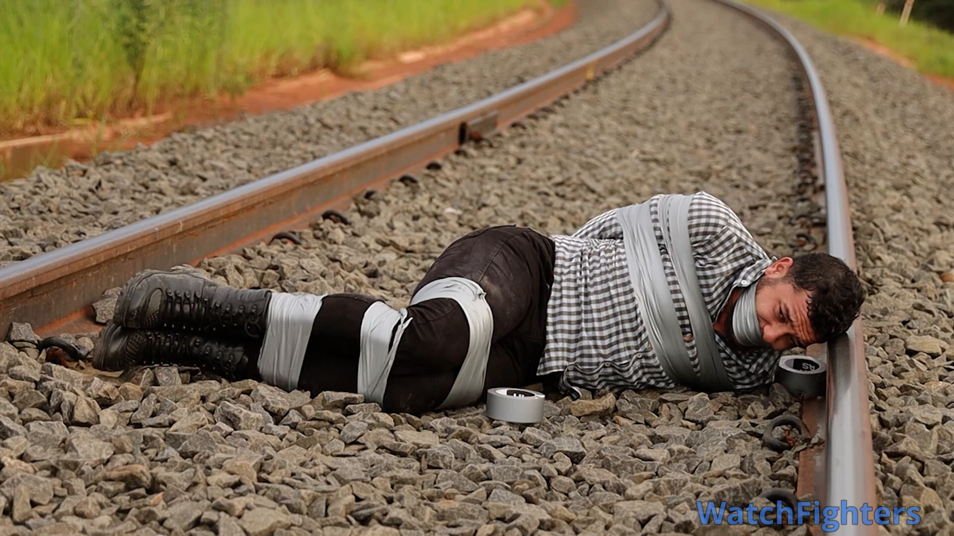 The tracks hold secrets that no one should ever discover.In the interior of Mato Grosso, the fully operational railway hauls tons of soybeans and corn toward the Port of Santos, pulsing like the main artery of Brazilian agribusiness. Erick, pursued by a hooded man who emerges from the shadows of the rail line, tries to escape the constant, silent presence that follows him relentlessly.When he finally believes he has shaken off the pursuer, Erick stops on the tracks to catch his breath.In a matter of seconds, the man appears behind him. Without a word, he immobilizes Erick with silver tape, firmly binding him to the tracks of that essential railway for the country.Now, pinned to the cold steel, Erick faces pure terror: free himself before the next train passes, loaded with grain bound for the port — or watch those tracks, which drive Brazil's economy, become the exact site of his end.A line with no return. A secret that cannot be revealed. And the clock ticking to the relentless rhythm of the railway.