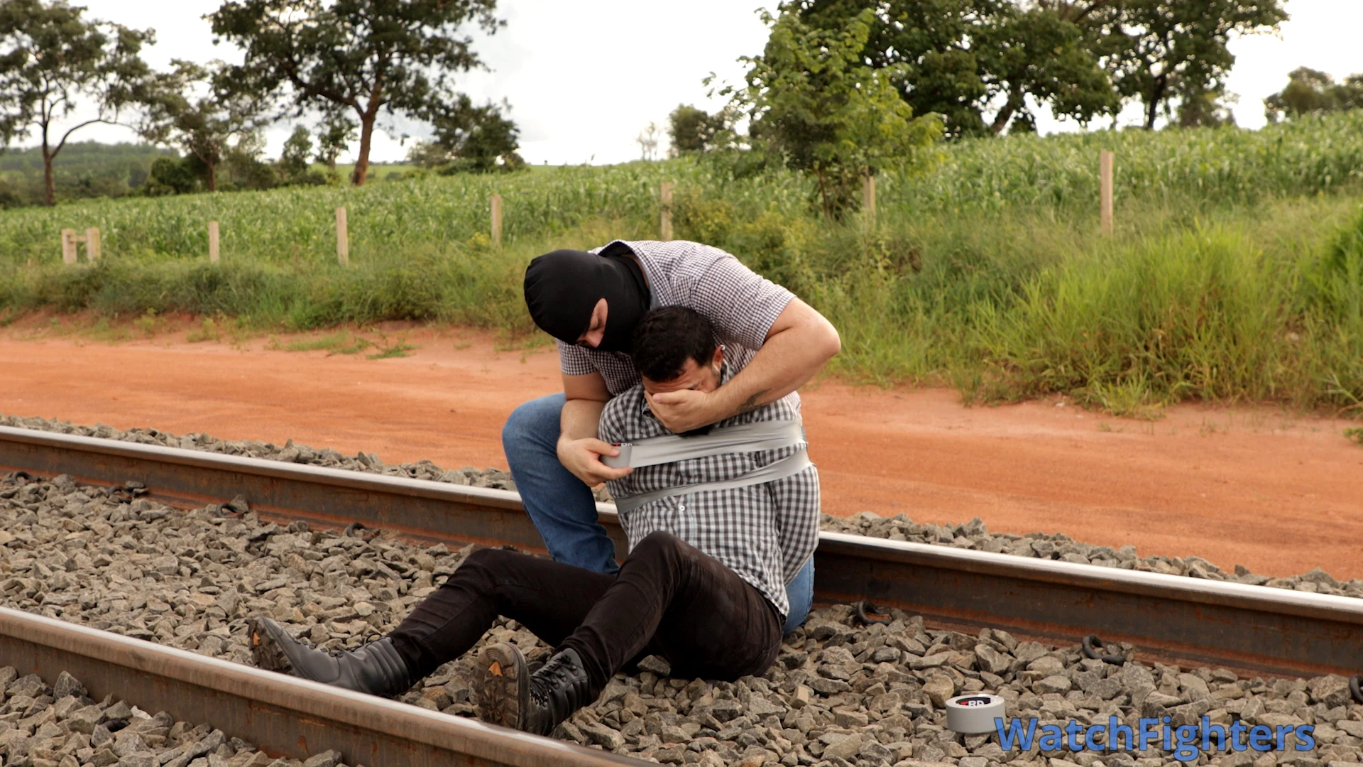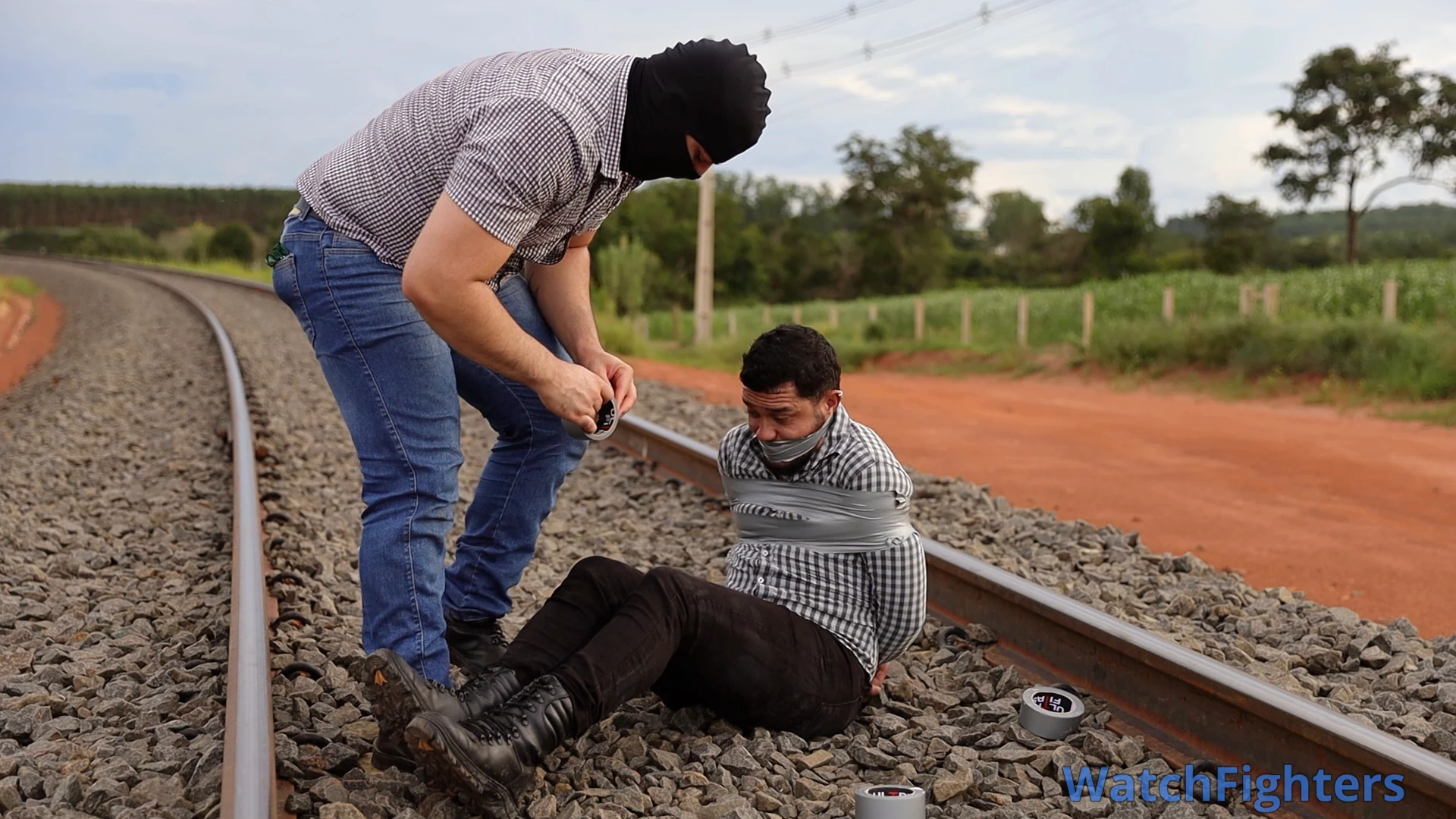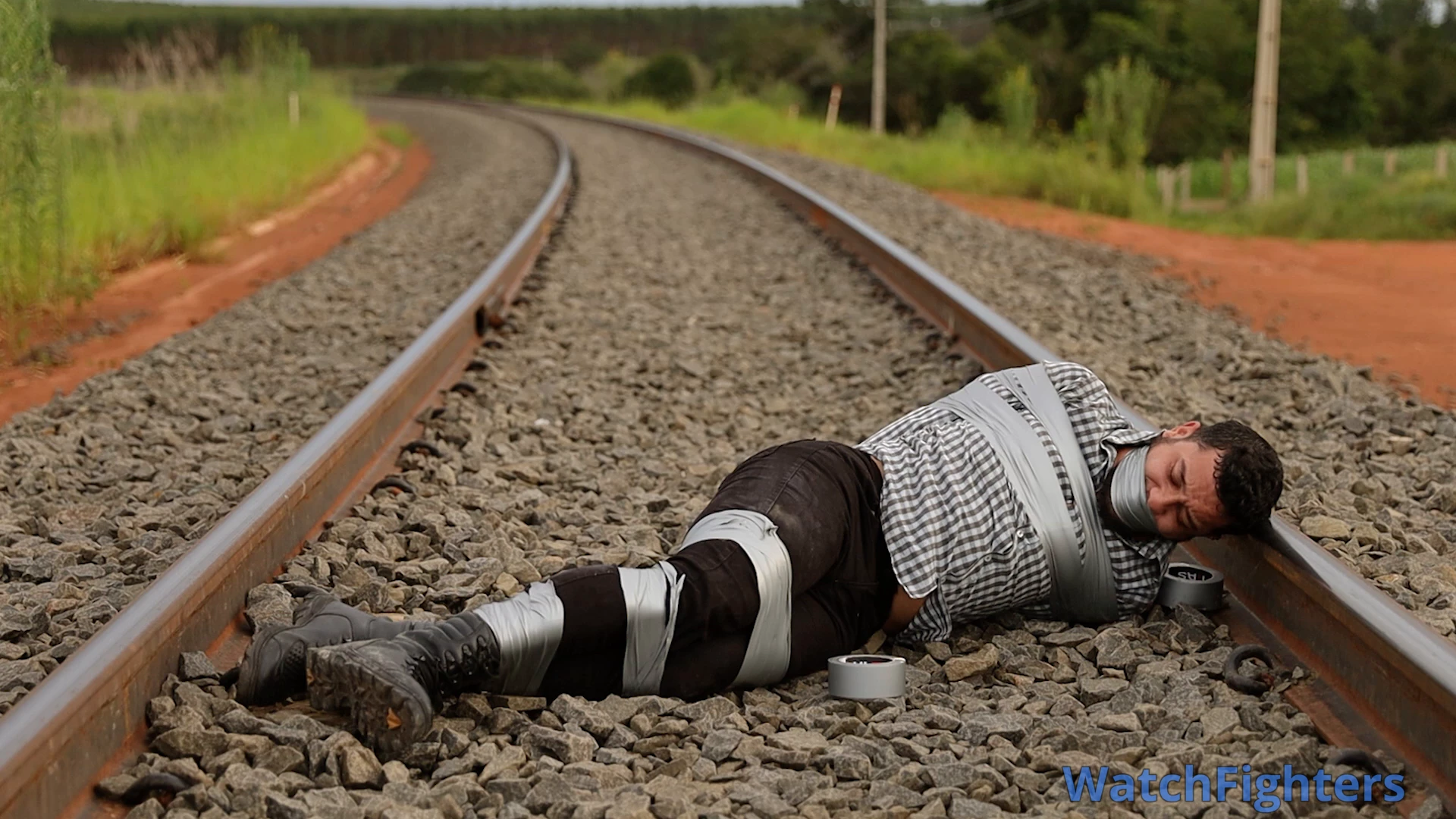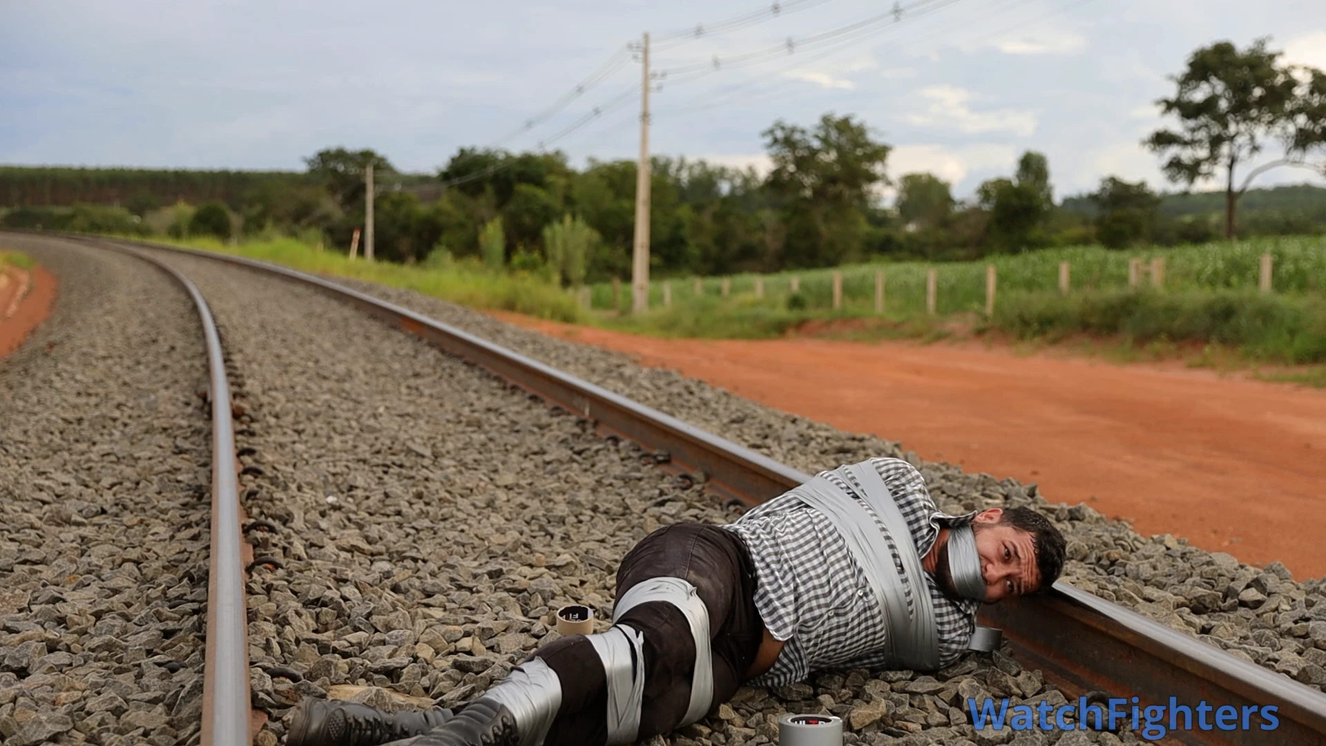 The tracks hold secrets that no one should ever discover.In the interior of Mato Grosso, the fully operational railway hauls tons of soybeans and corn toward the Port of Santos, pulsing like the main artery of Brazilian agribusiness. Erick, pursued by a hooded man who emerges from the shadows of the rail line, tries to escape the constant, silent presence that follows him relentlessly.When he finally believes he has shaken off the pursuer, Erick stops on the tracks to catch his breath.In a matter of seconds, the man appears behind him. Without a word, he immobilizes Erick with silver tape, firmly binding him to the tracks of that essential railway for the country.Now, pinned to the cold steel, Erick faces pure terror: free himself before the next train passes, loaded with grain bound for the port — or watch those tracks, which drive Brazil's economy, become the exact site of his end.A line with no return. A secret that cannot be revealed. And the clock ticking to the relentless rhythm of the railway.