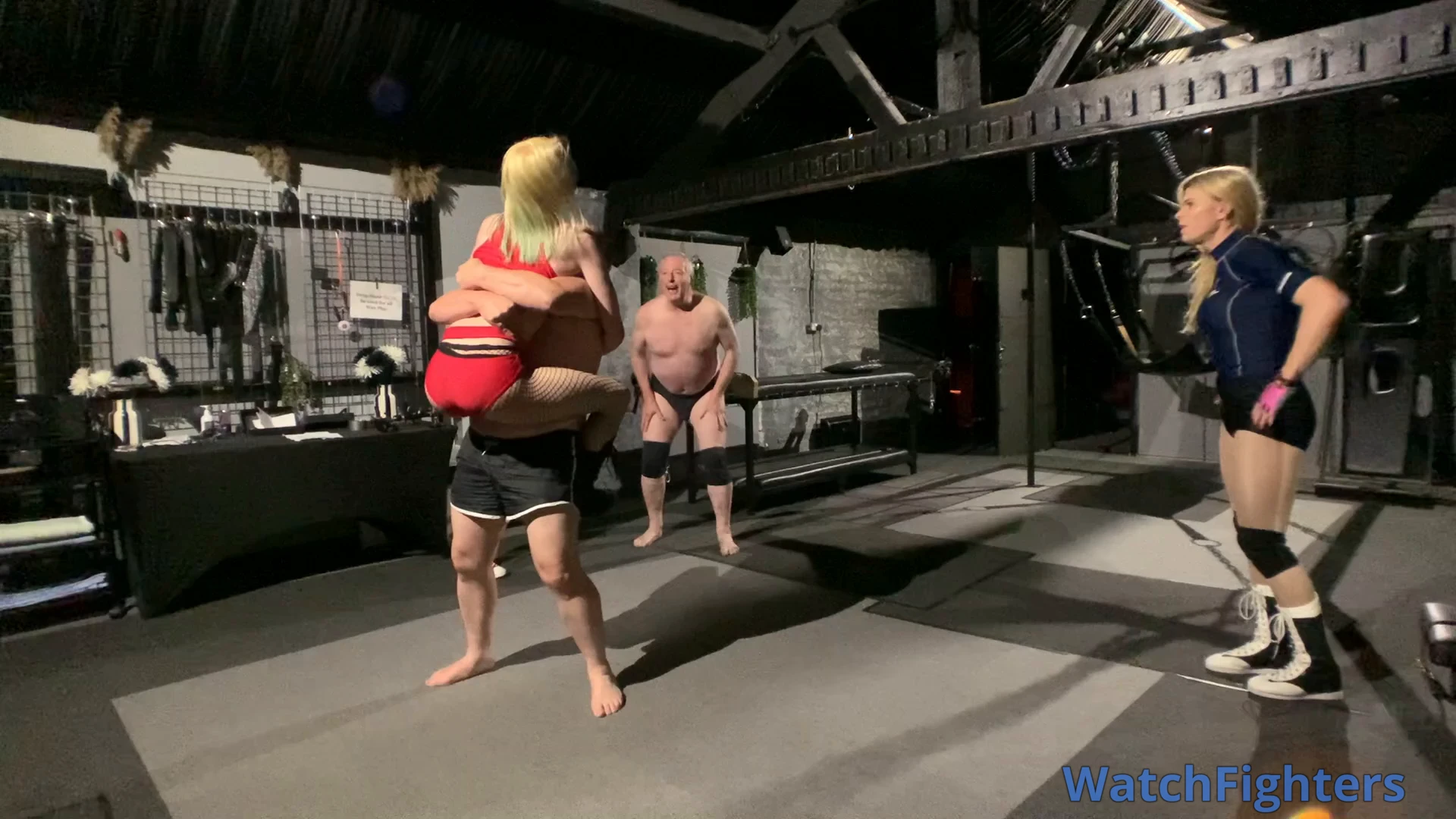 Action from a pro style mixed wrestling dungeon match featuring the female team of Rosie, Skyler and Nina Jay v Gary and Stephen held at The Facility Walsall.