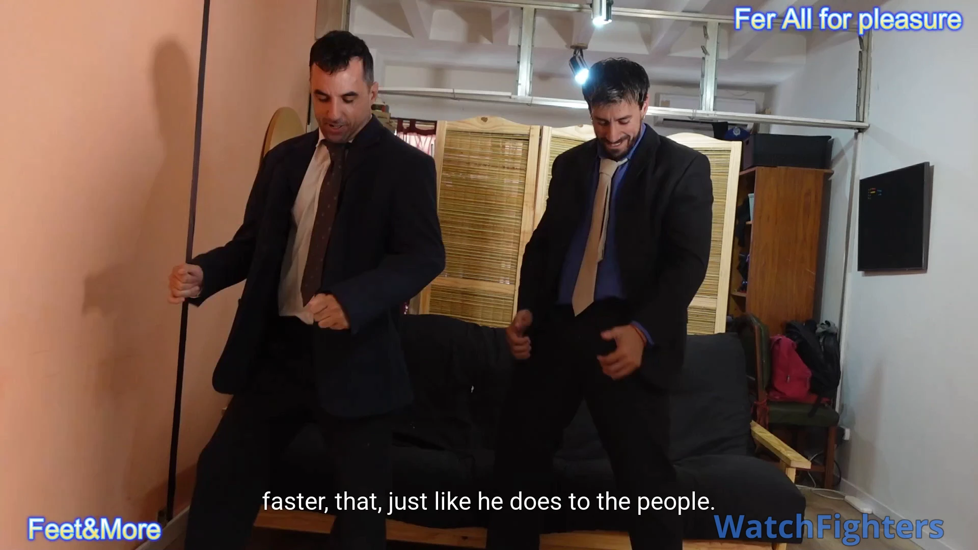 Now you moan for me, slaves." They both moan with pleasure while Fer possesses them with his hands. Then he orders them to sit in an armchair, where he puts them back to sleep. Take the opportunity to take off their shoes and smell their socks. Then he tells them that, when they wake up, they will think they are in an interview with someone very important and that, when they hear the word of an animal, they will imitate its sound.