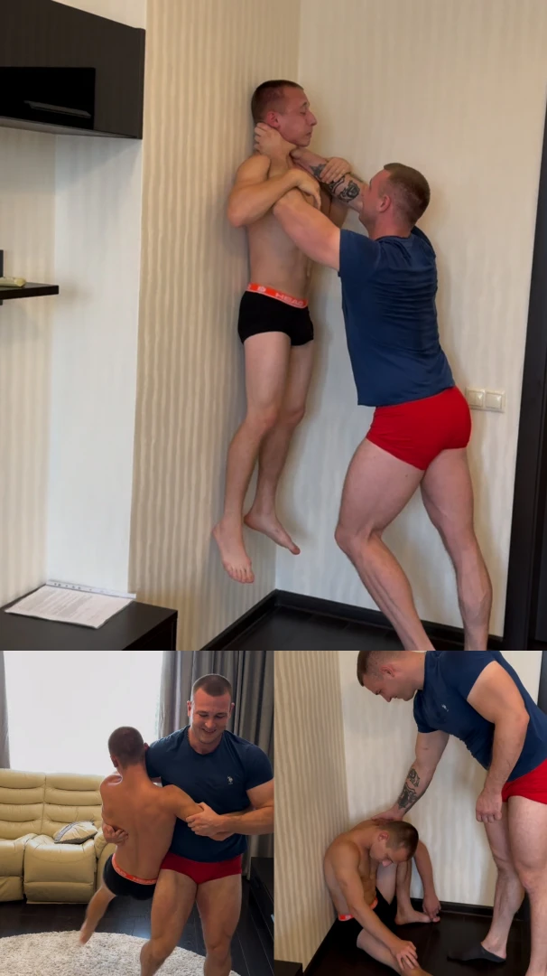 Giant Timur is back in the arena. A mountain of muscles crushes poor Jack. Timur's muscular legs tightly squeeze out Jack's last breaths. Timur's muscular hands hold Jack one meter above the earth as Jack yells helplessly with his feet. Jack flies around the room like a fluff in Timur's hands.