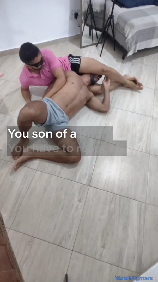 Gay afeminado xingando e aplicando chaves de pernas em seu primo homofóbico