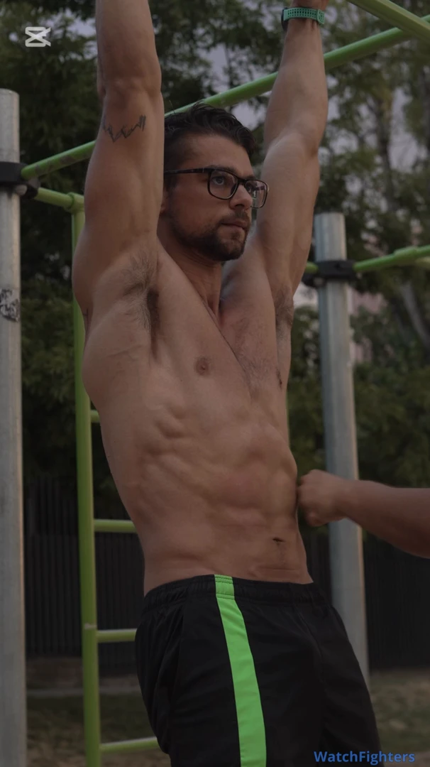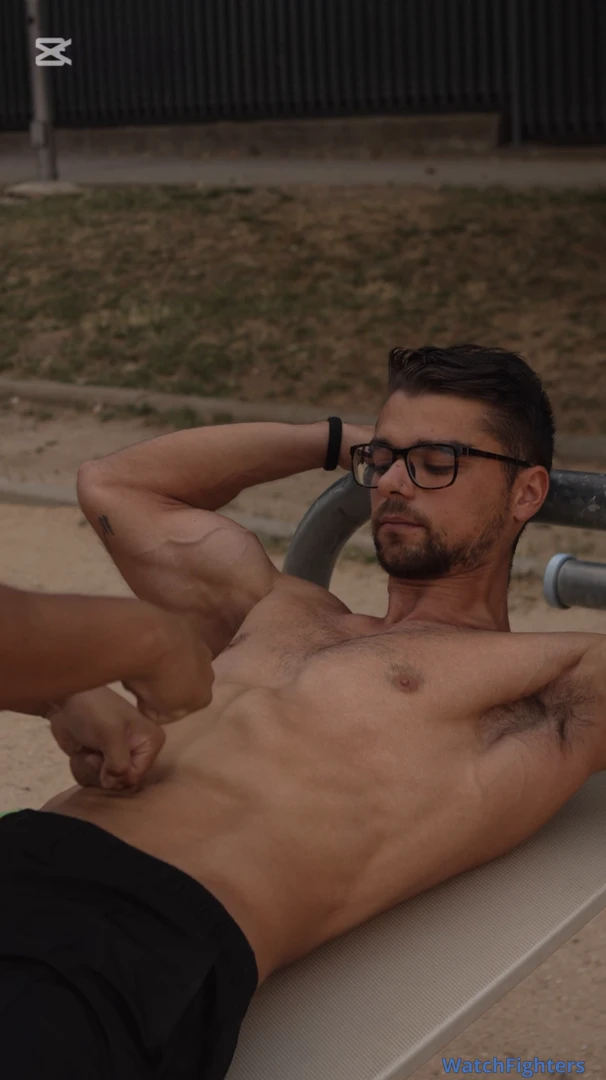 Ivan is training in the park, and he works on his abs with some good punches. You can see how his abs turn red at the end.