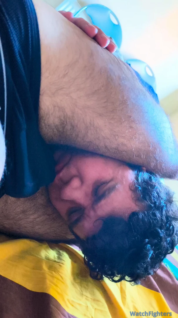 Do you enjoy a strong headscissors? Watch as I put more and more pressure on this twink's head with my legs. He can't escape. He is helpless.