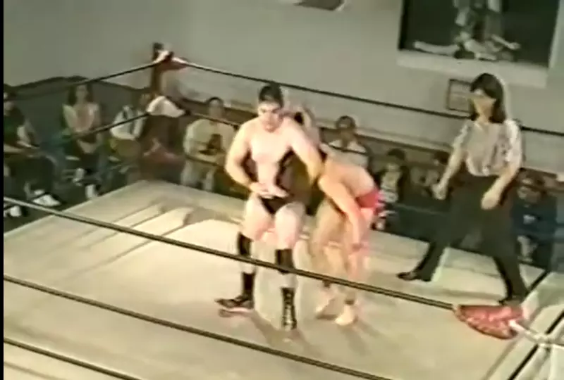 There's nothing like a heel in black trunks, boots, wrist tape and knee pads destroying his jobber. Love this match... the hair pulls and the relentless beating the jobber received until the final win. The barefoot jobber is pretty hot too... Match pics and video link are below. 💪😉
