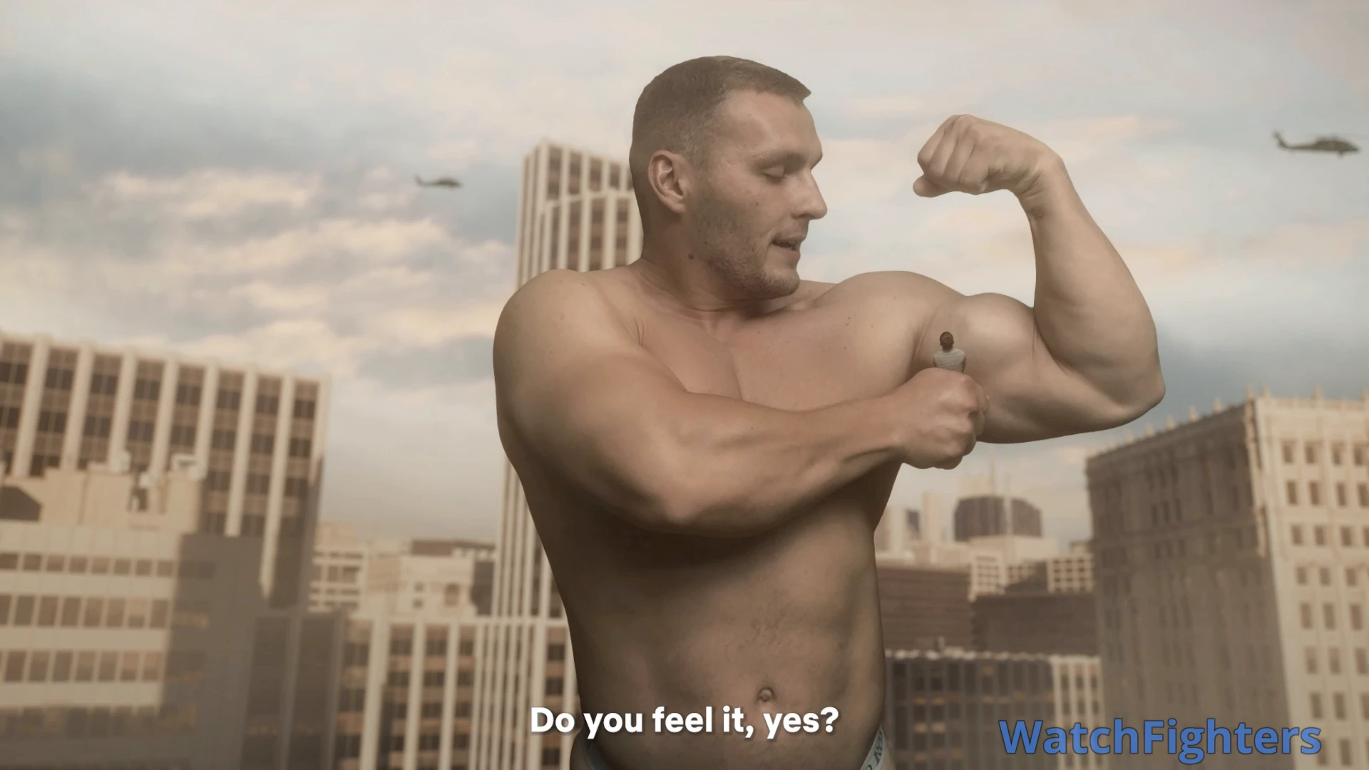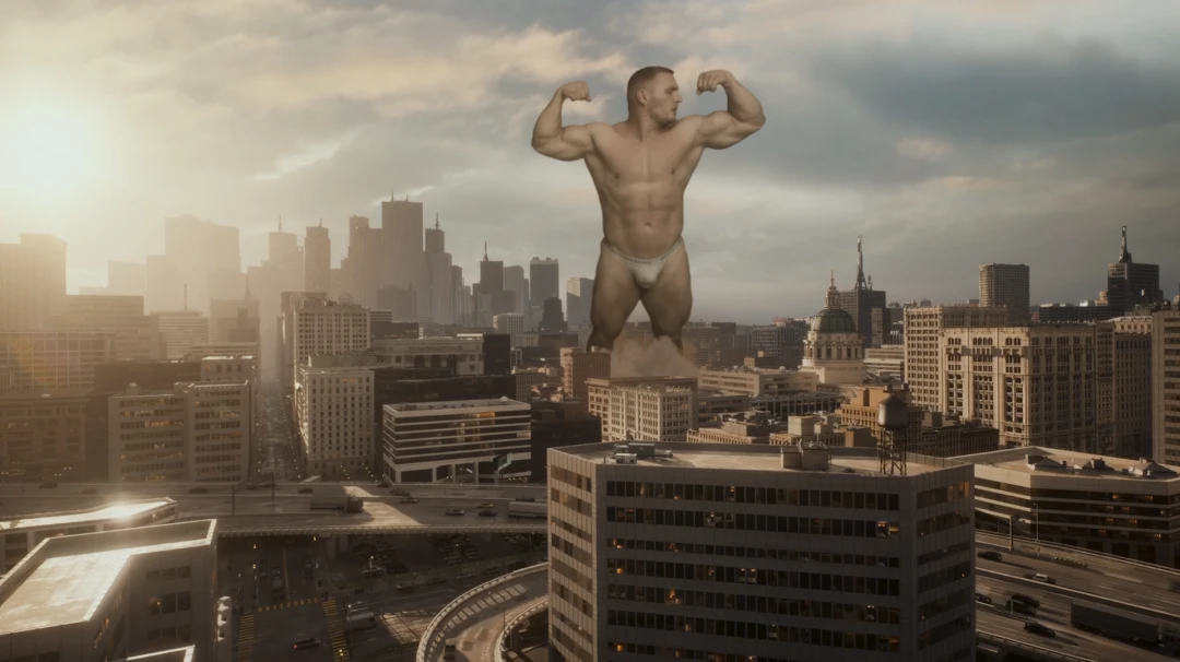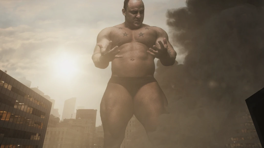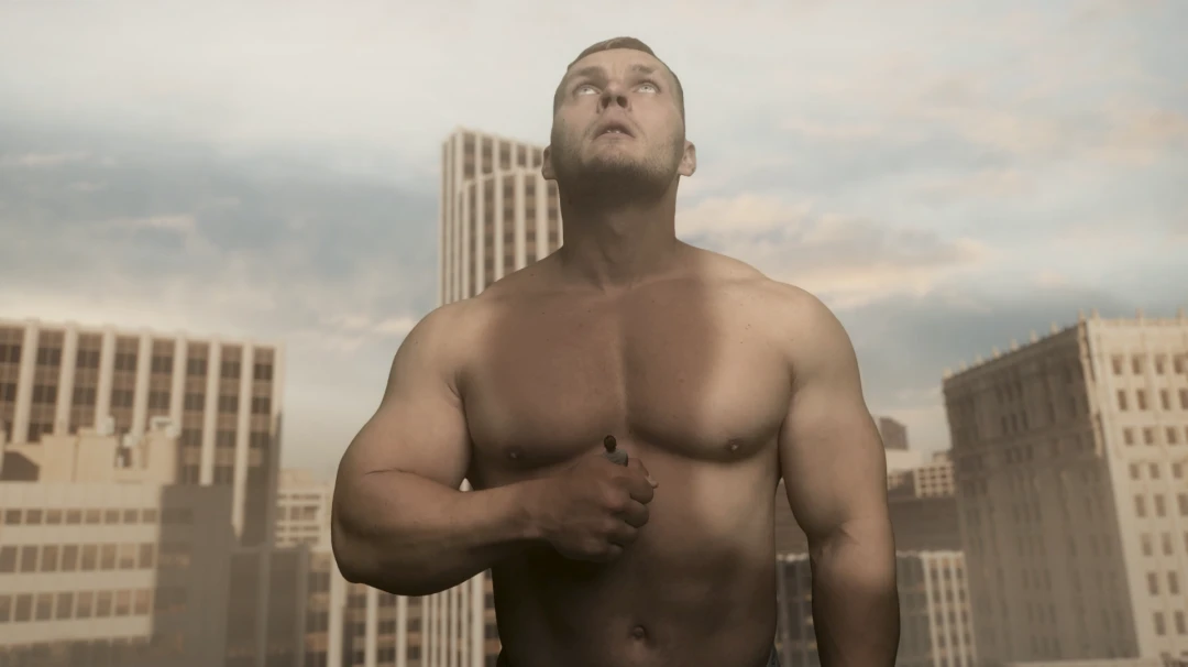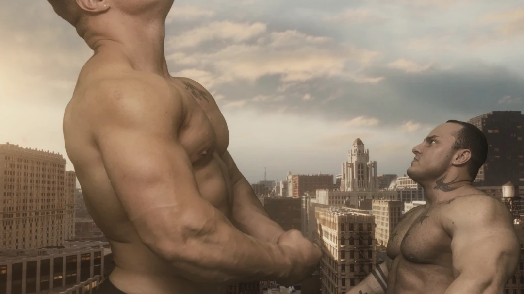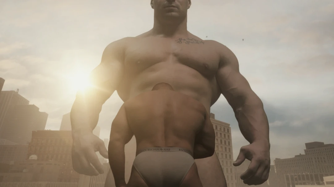 A revengeful scientist unleashes titanic muscle gods on the city. 💪
