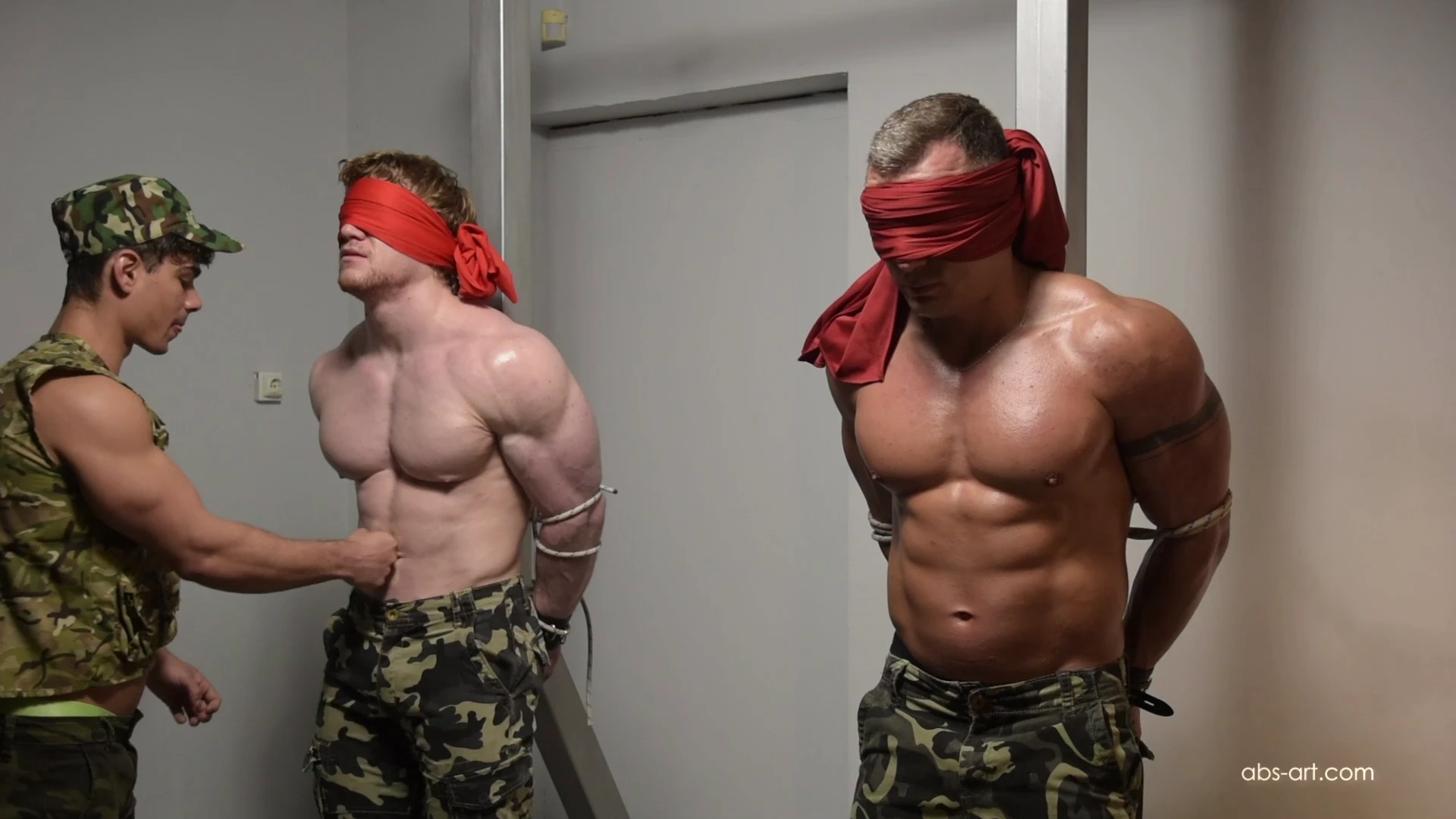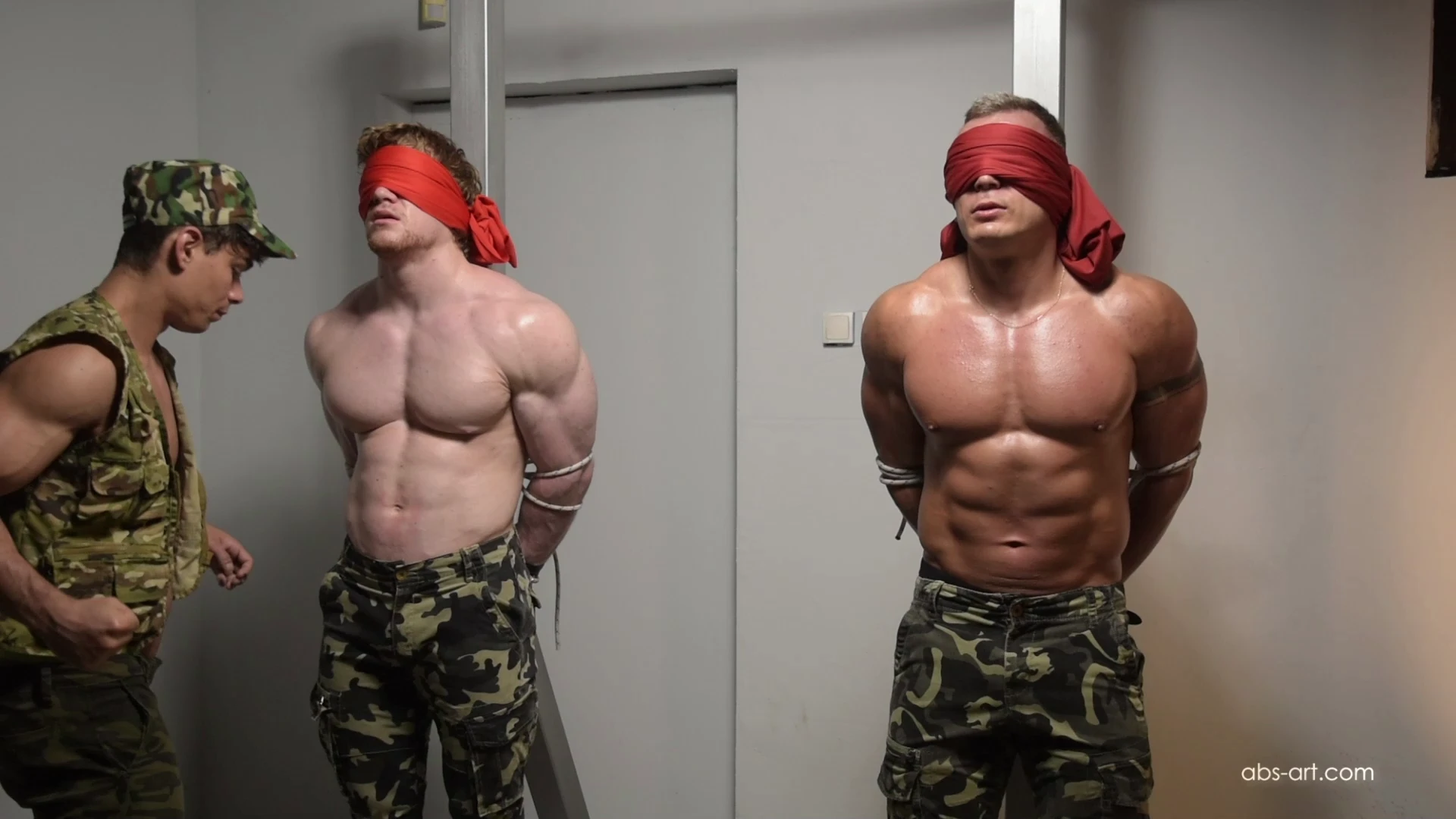 Lieutenant Bruno is gut punching his cadets Dexter and Roland