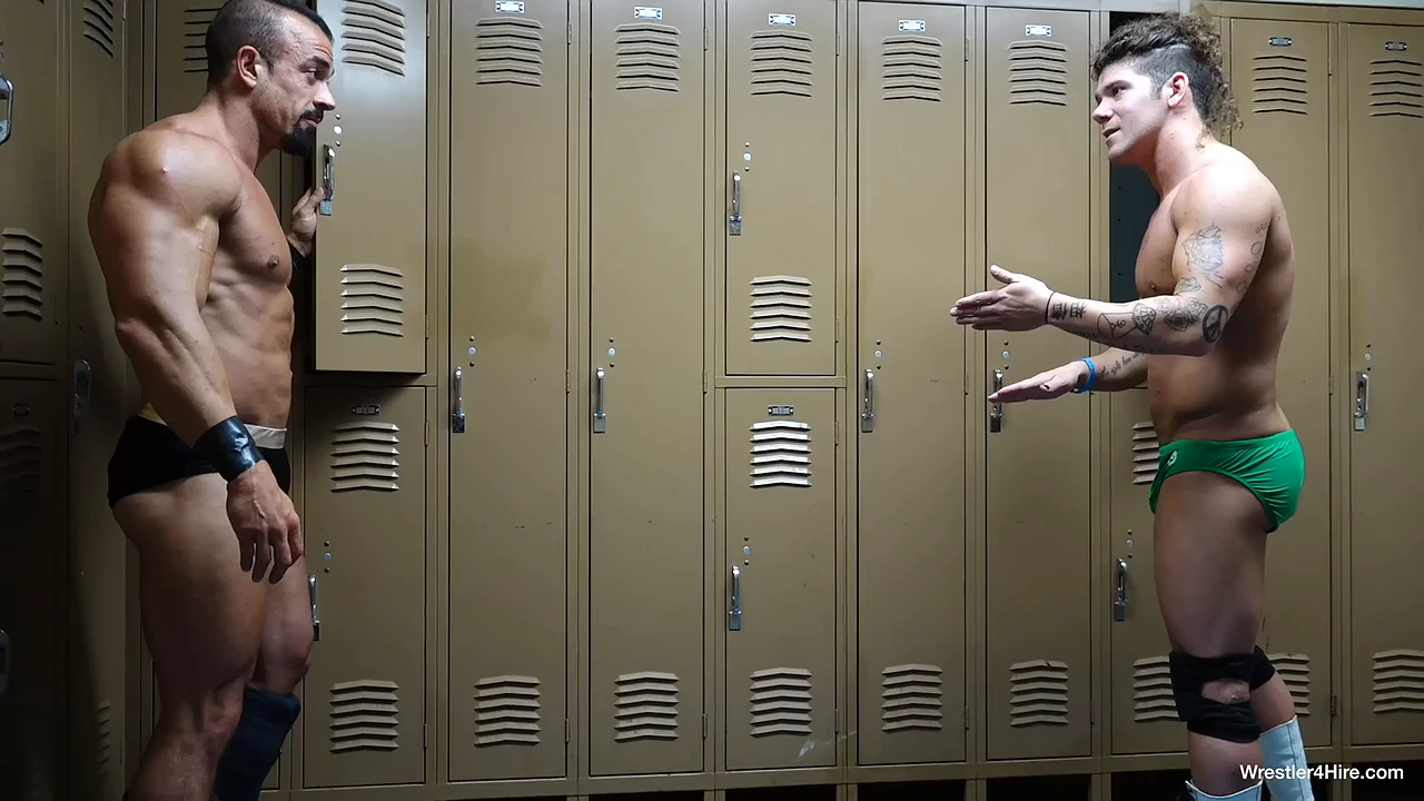 This is the locker room fantasy you probably wished for, or maybe even participated in. Ace Owens used to be the W4H twink-in-residence, but he’s grown up a little, letting the hair grow out and showing off a few more tats. So, he doesn’t have time for small talk with the older MarkO. But Ace seems to forget that every time he tries to get cocky, the other wrestler usually wipes the mat with him. MarkO, ripped as ever, is offended by Ace’s talk-to-the hand attitude, and when Ace’s back is turned, MarkO grabs the drowsy dust from his locker and puts Ace out cold. And now the fun begins!