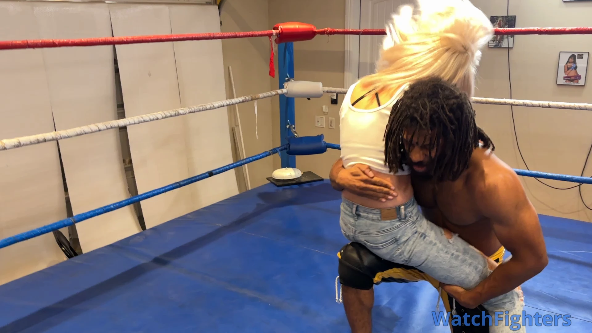 Maledom Wrestling: Muscle Hunk Cunt Busts Petite Blonde!
