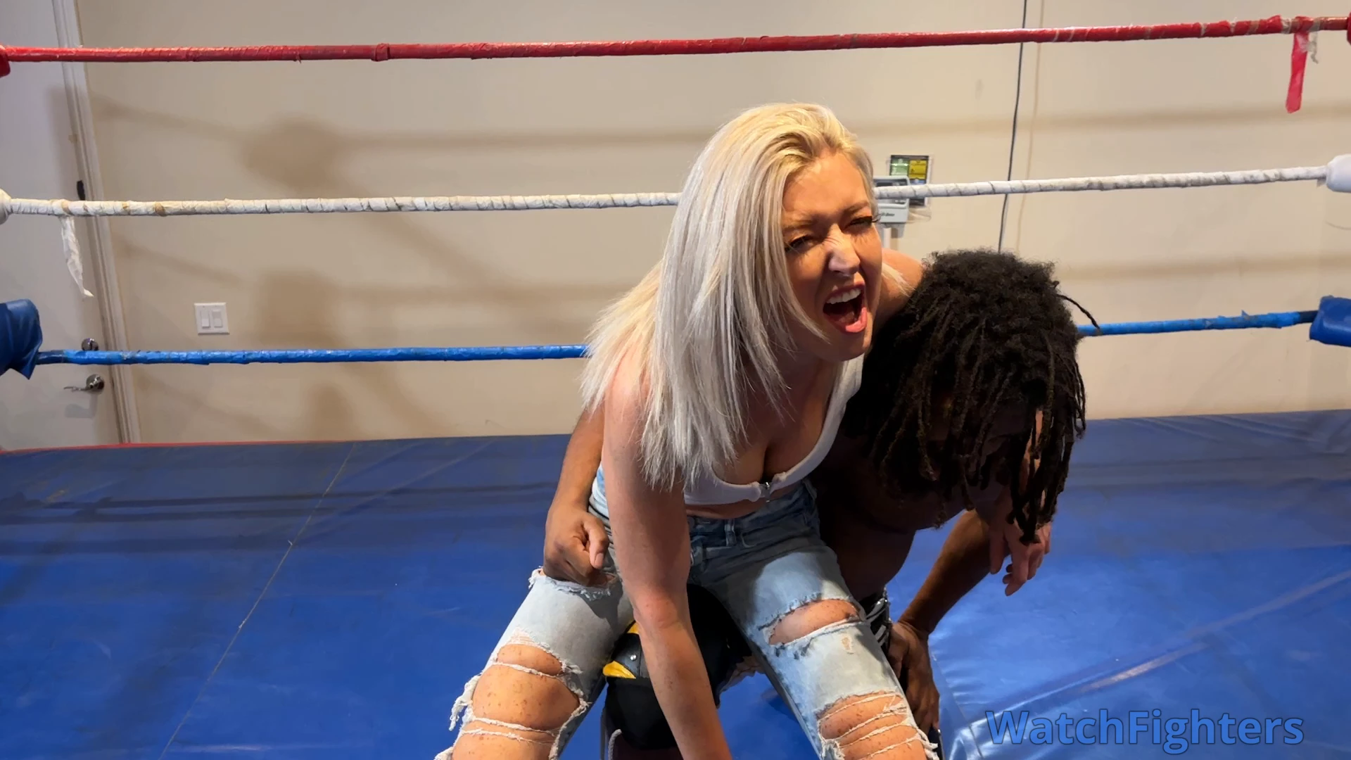 Lily is feeling jacked and she’s ready to use her muscles in the ring against Jag, but he’s only here to do one thing - deliver endless low blows in a cunt busting match!!! Watch him pound her nether regions with his feet, knees and elbows until she can’t take any more!