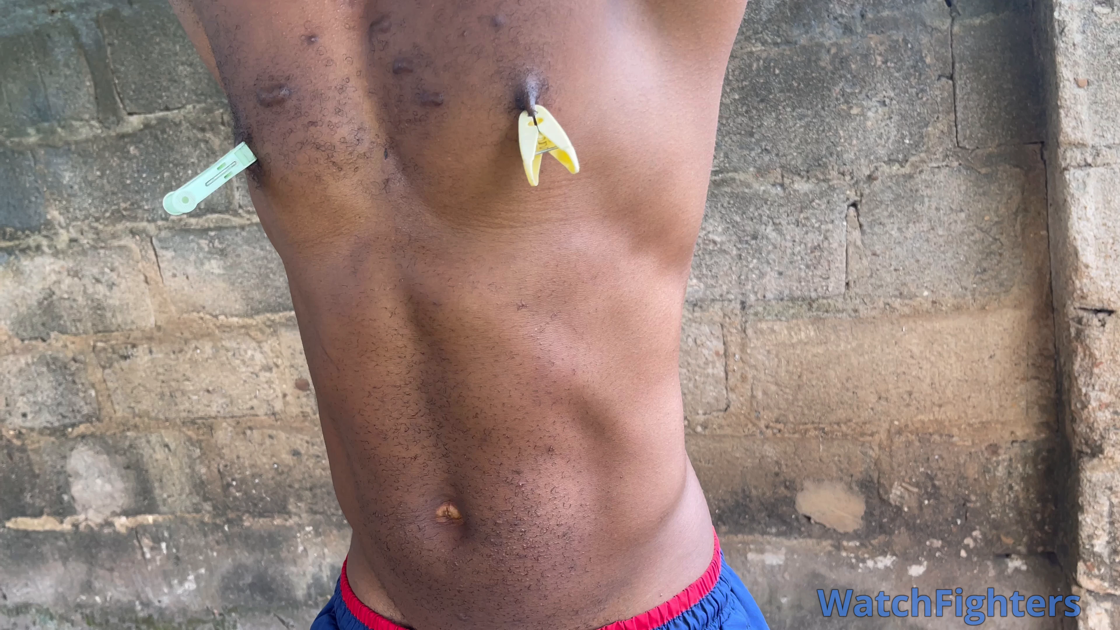 This is an interesting real deep navel and nipple play with a very muscular Africa bodybuilder