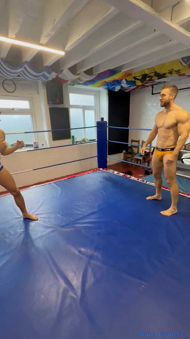 That being said itβs a strip battle of David Vs Goliath with naked ball busters! And this time Jay Mitchell takes control getting 6ft Max hunter in a head lock finish and ball twisting him into submission!