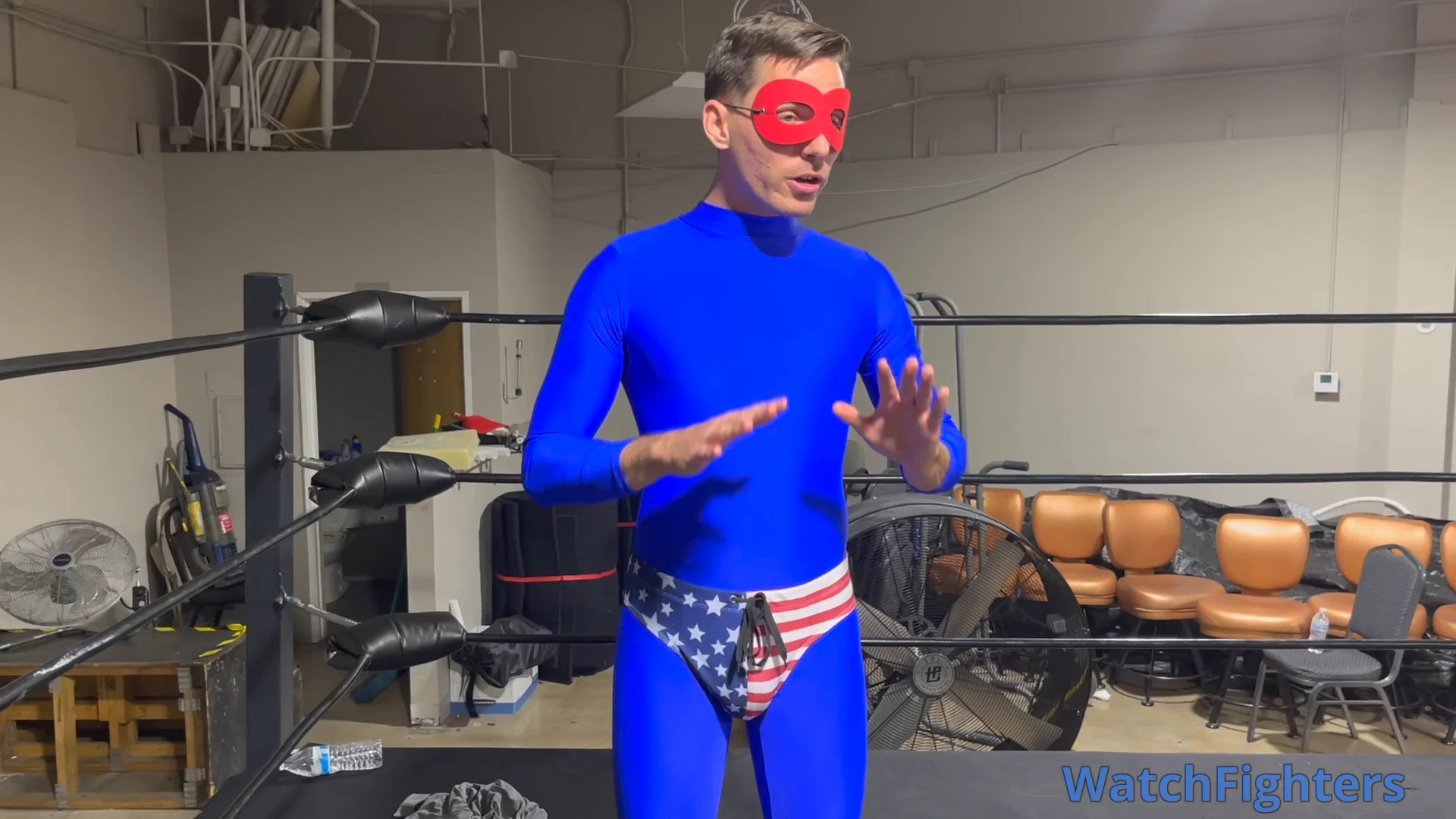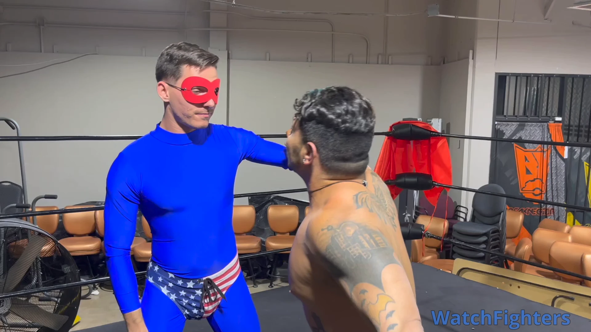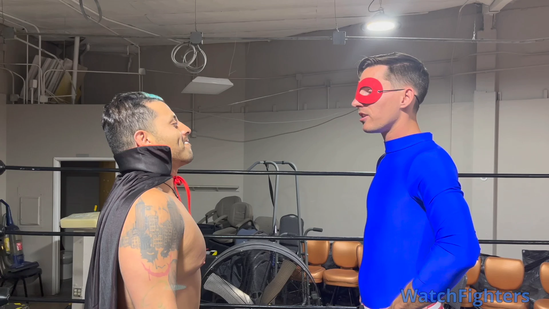 Intrepid reporter Charlie is investigating Coach Vinnie, but neither of these guys have any idea what they're really in for in this Halloween themed clip involving a superhero and a vampire! Featured moves include lowblows, gut bashes, a headlock and stripping to tighty whities!