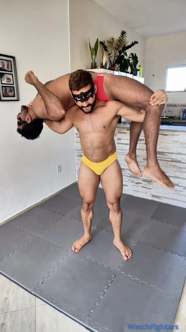 MIGHTY BEARHUG CRUSH: TALL TITAN SQUEEZES THE BREATH OUT OF MUSCULAR RIVAL