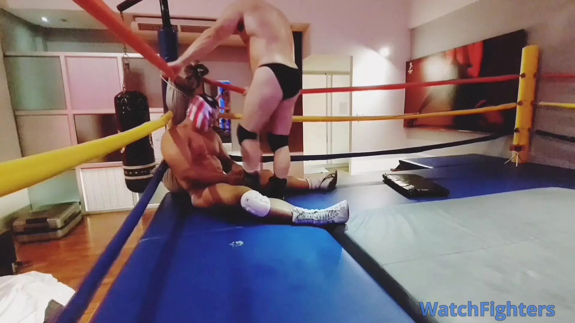 Muscle wrestler with US flag mask taught another muscle beefy wrestler jobber's lesson. But bad dream came when he got in trouble his mistaking move then it is turn to be his nightmare.