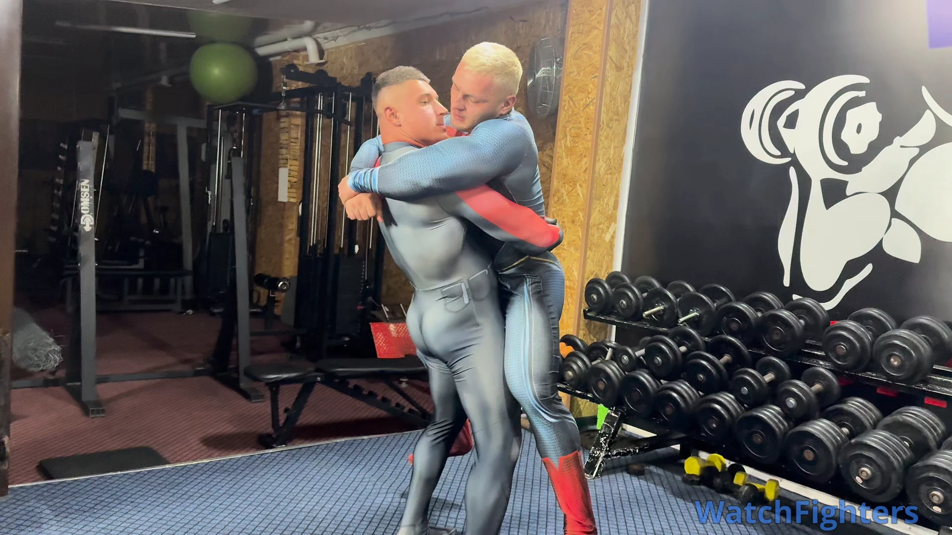From the time I was a young boy, the scenes in this video are EXACTLY what I imagined would happen in a fight between two muscular superheroes! They would not want to hurt each other because they are heroes, so I imagined they would prove their superiority in other ways like tests of strength and sexual dominance. As a kid, I would strip my superhero toys, action figures, and my sister’s Ken dolls of any removable clothes when I played with them and would then make them bearhug and frot each other in scenes like you and Romeo had in this match! Thank you VERY MUCH for bringing my childhood fantasies to life 40 years later!
