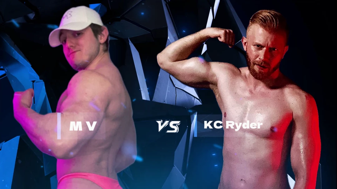 MV and KC have been rearing to get their hands on each other! An steamy grapple session quickly becomes a rough suck and fuck on the mats. KC pounds MV into submission and claims his prize as both studs blow their loads in a sweaty climax!