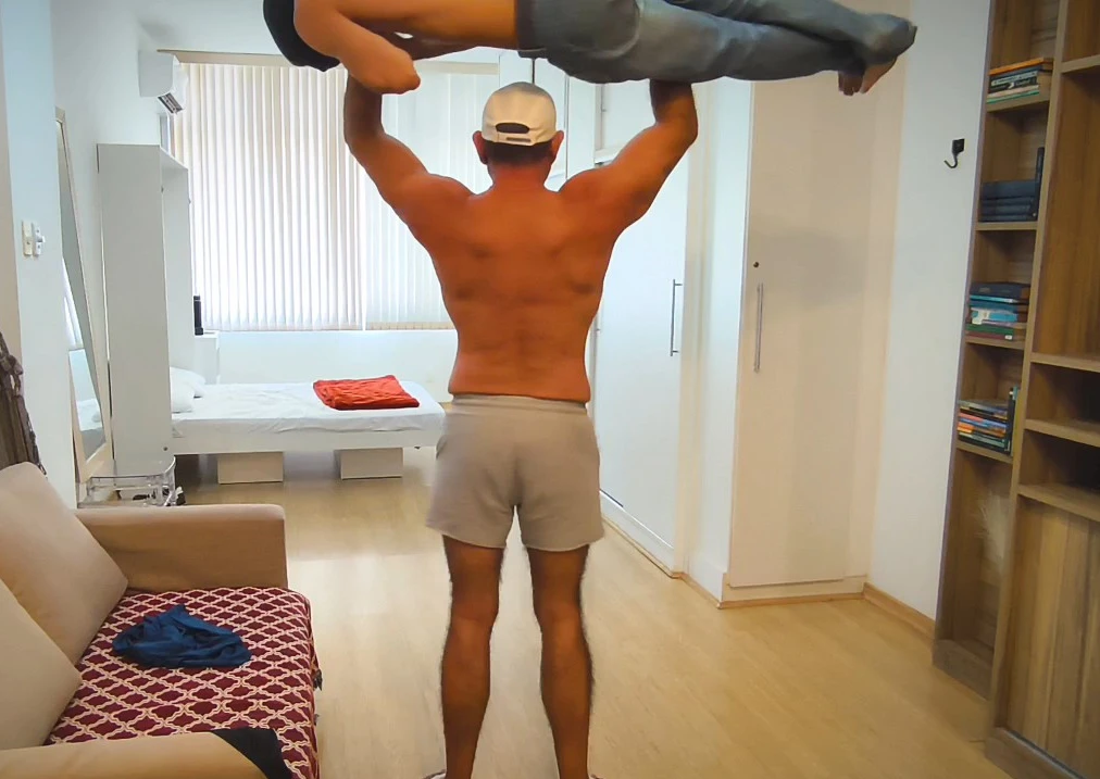 In this video he worships my muscles, we compare sizes and then I lift him in several ways!