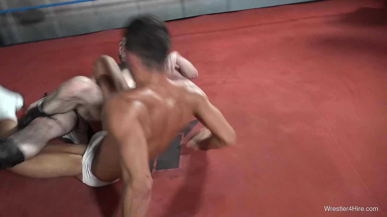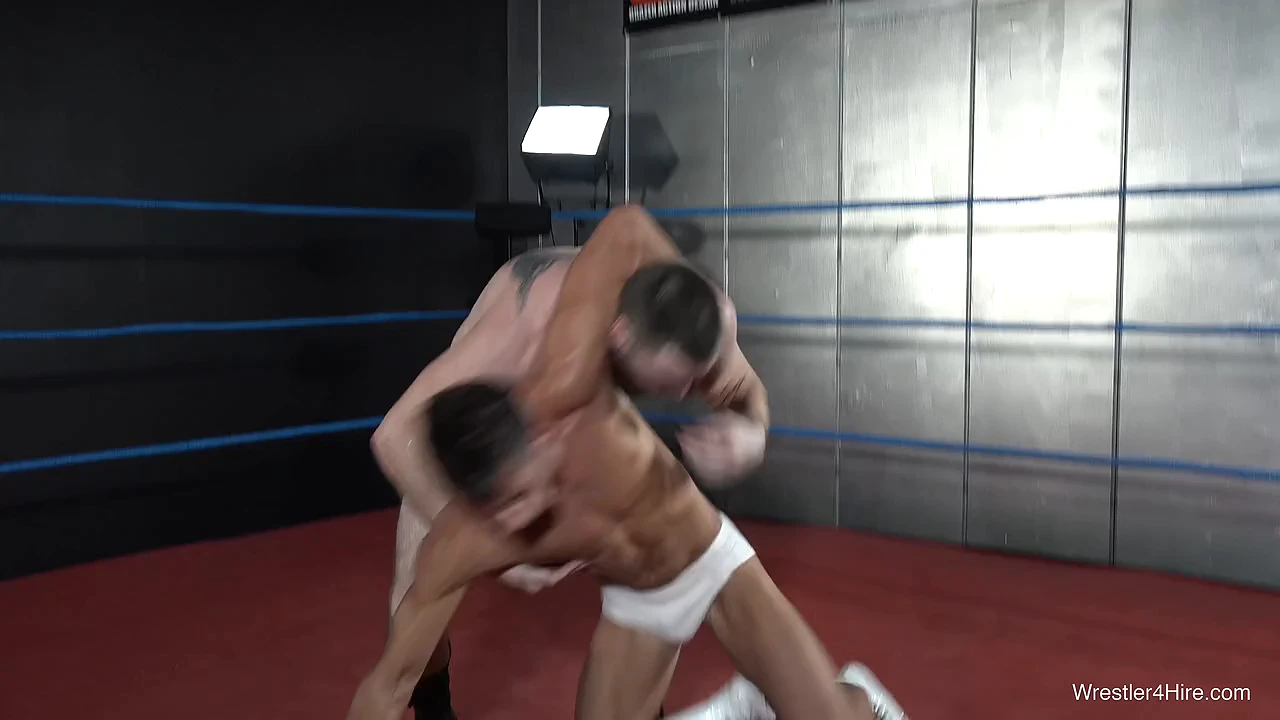 These guys exchange power and position again and again, making it impossible to guess who will come out on top in this surprisingly even match between two very different dudes. Filled with sleepers, nuggies, pins, tangled legs, face slaps, hate filled trash talk, sweat, and so much more. The sweaty slap fight in the middle of the match is a particularly hot highlight!