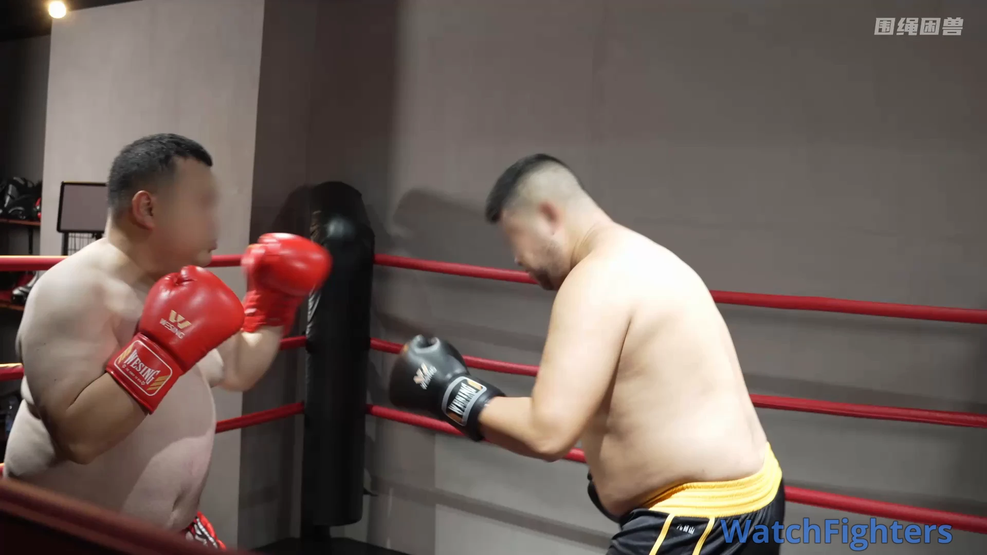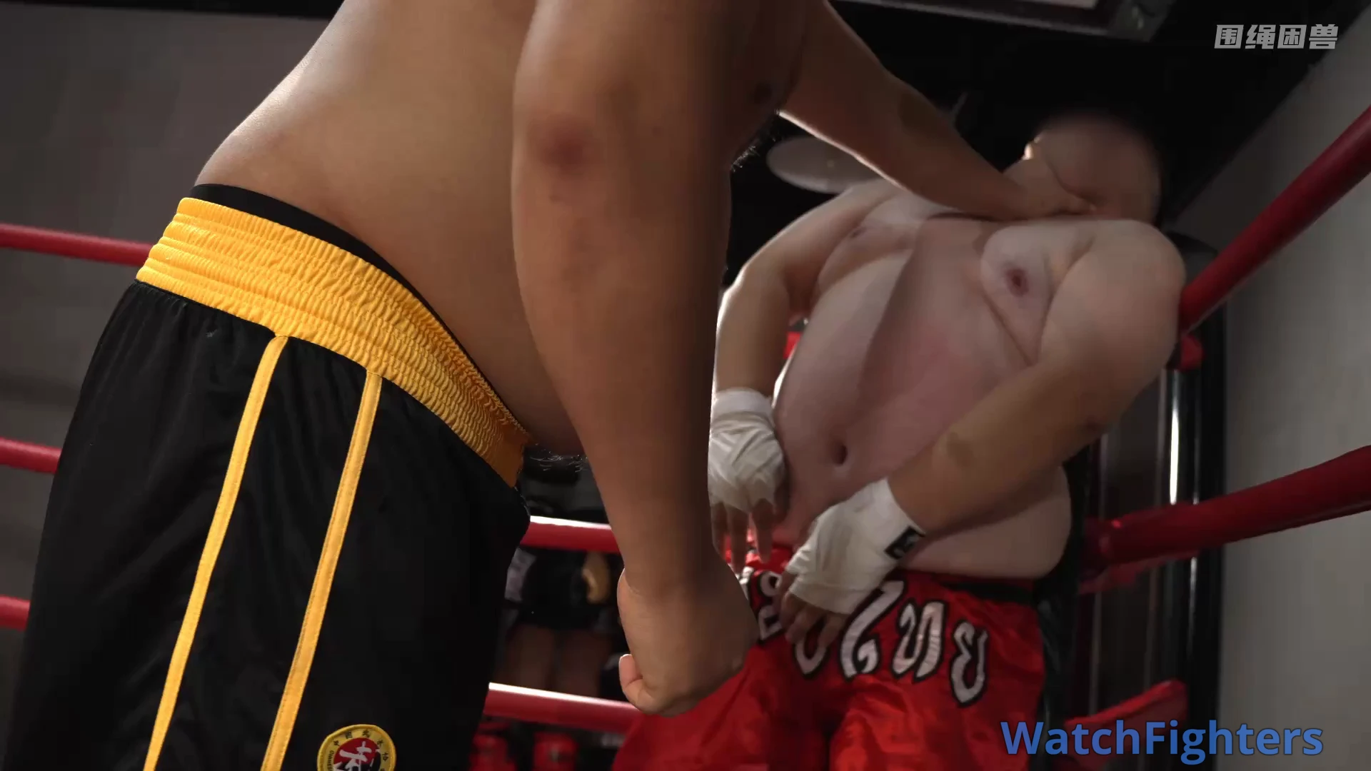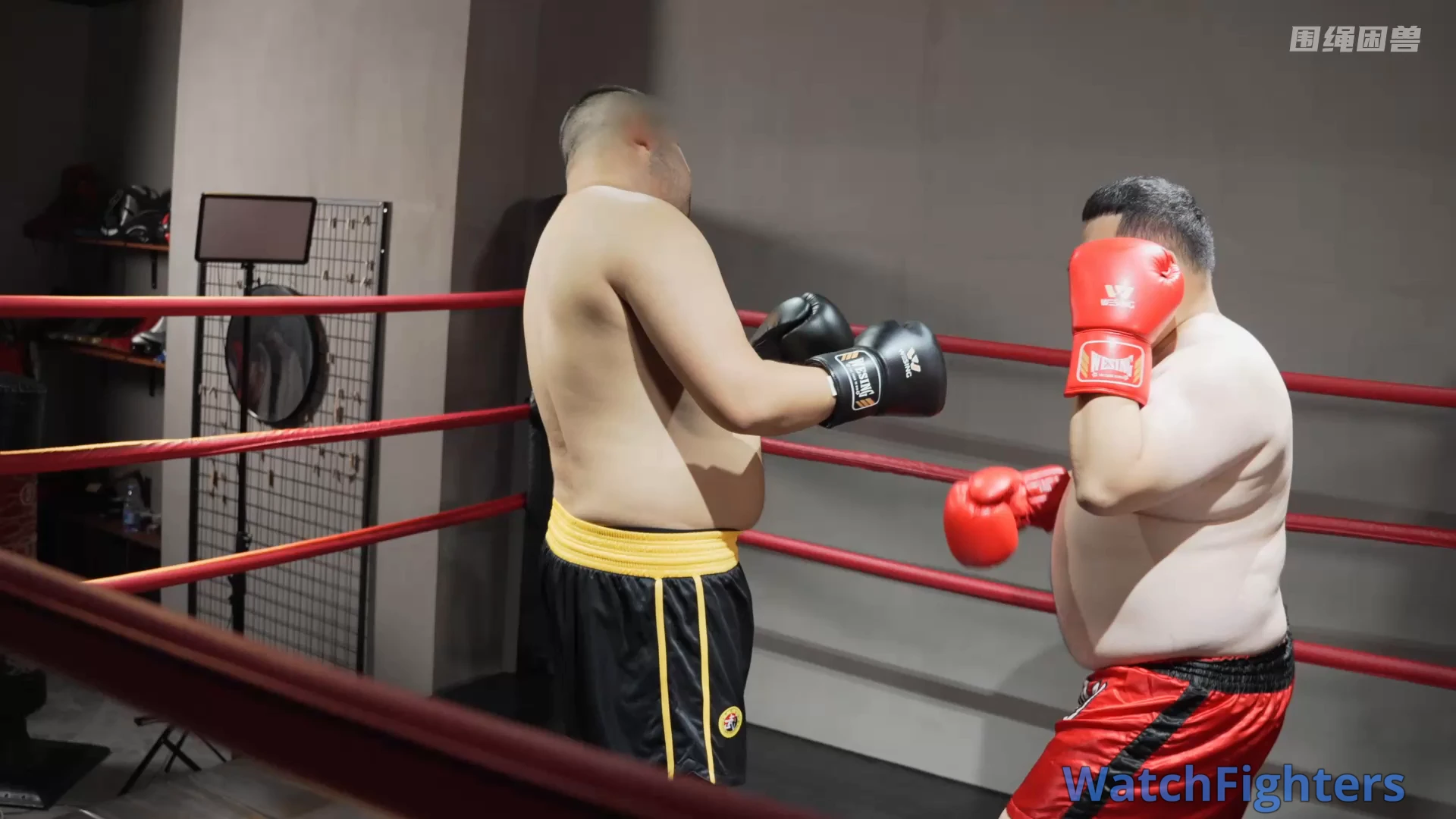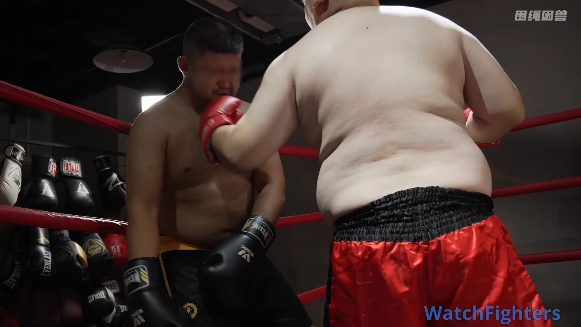 The fat guy couldn’t stand the boxer’s malicious fouls in the ring. He stepped onto the platform to teach the boxer a lesson. In the end, did the offender get his just deserts, or was the meddling fat guy severely humiliated?