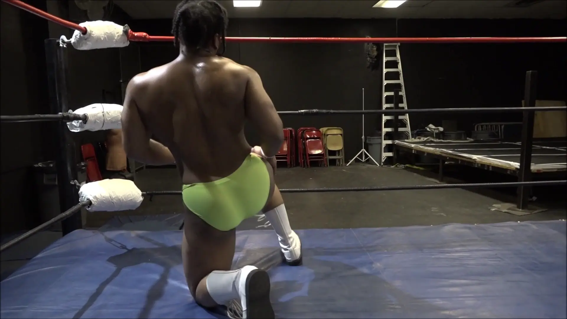 There seems to be a problem as QTR informs Jonny that he did not bring the fee for the match. Jonny decides to do the bout "pro bono" and what ensues is a series of moves wherein Jonny maneuver QTR in a hold, only to have QTR reverse Jonny in the same hold. The issue for Jonny, QTR is a powerful individual with a massive upper body, so when QTR paces Jonny in a bearhug, you know he feels it. The pain on Jonny's face is palpable, and between that, and getting his arms wrenched behind his back by the rookie, Jonny soon decides that he has had enough.